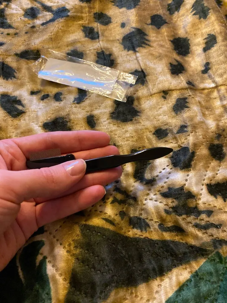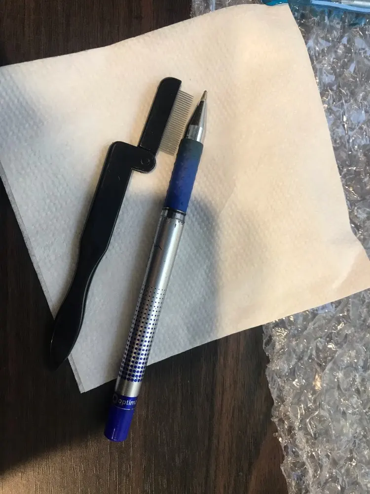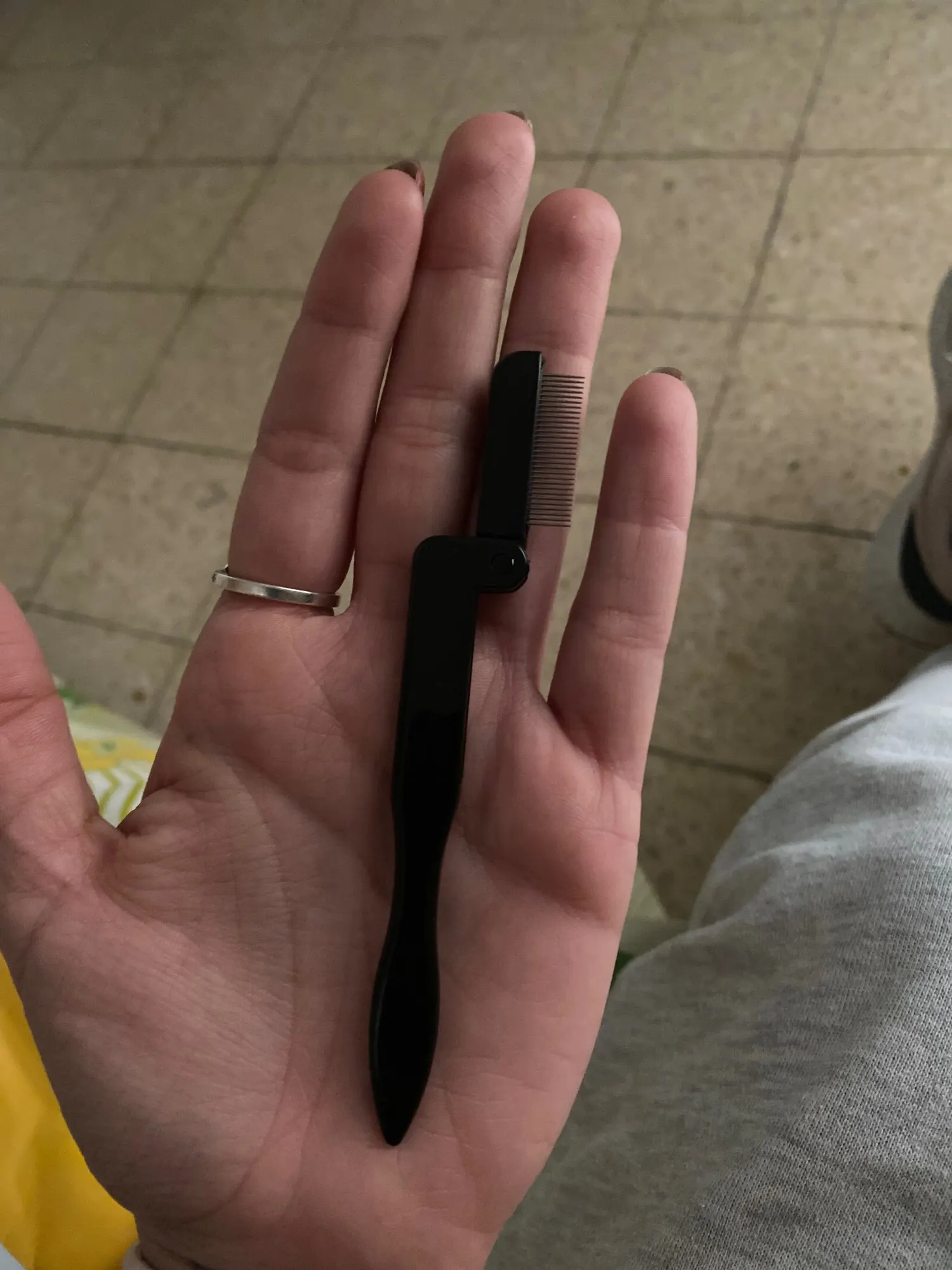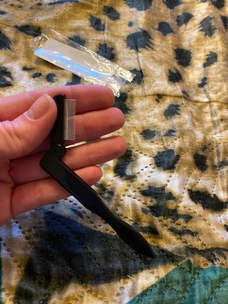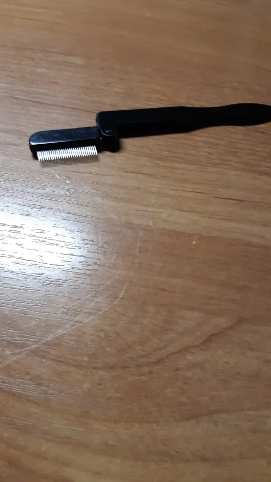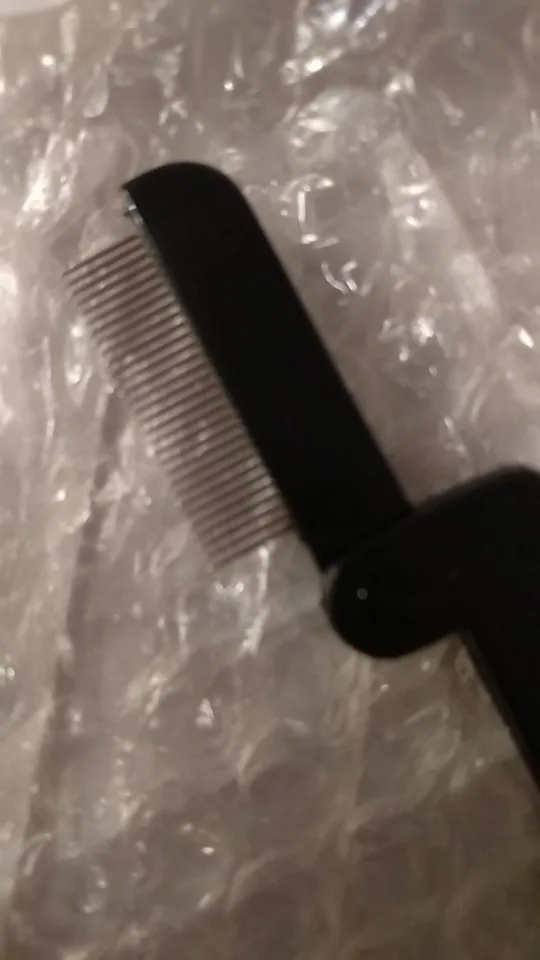 пришло за три недели, зубчики из металла, не особо острые, но тонкие. причесать ресницы хватит