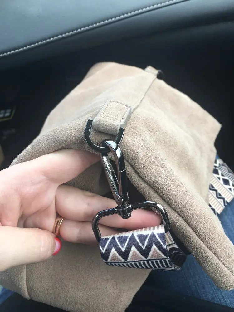 Очень приятный на ощупь ремень, ткань такая гладкая. В реальности цвета потемнее. Фурнитура вроде качественная. Довольна покупкой.