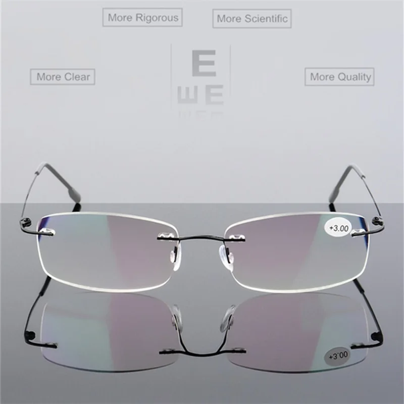 Очки для чтения без оправы, из нержавеющей стали, от + 1,0 до + 4,0