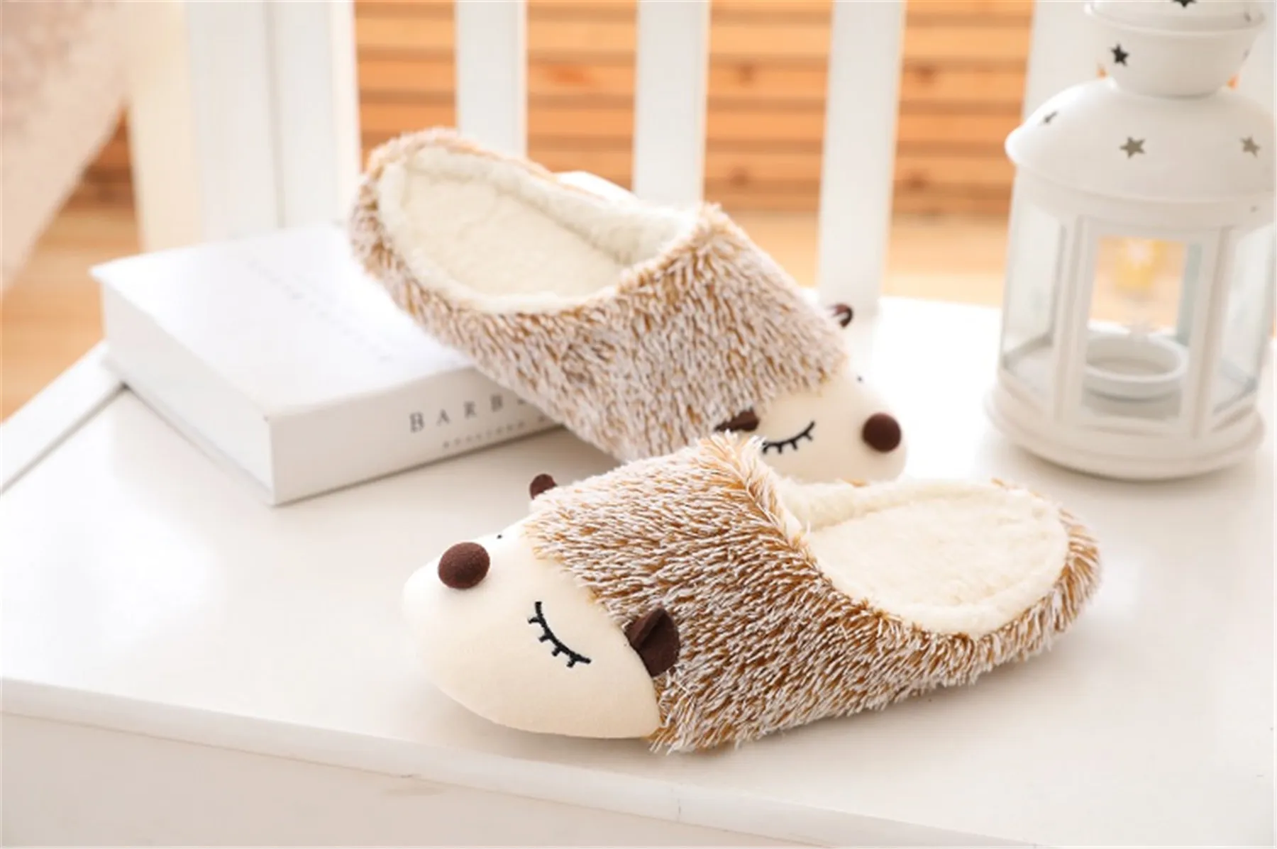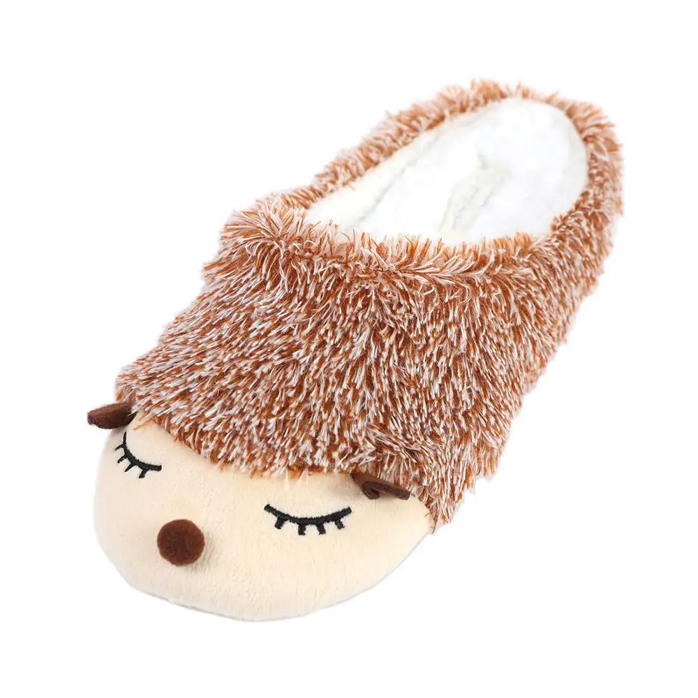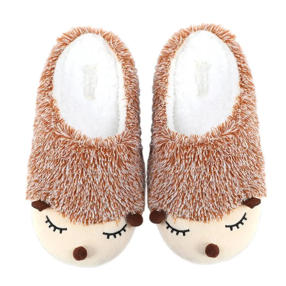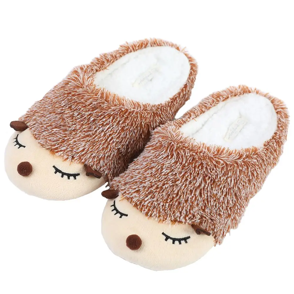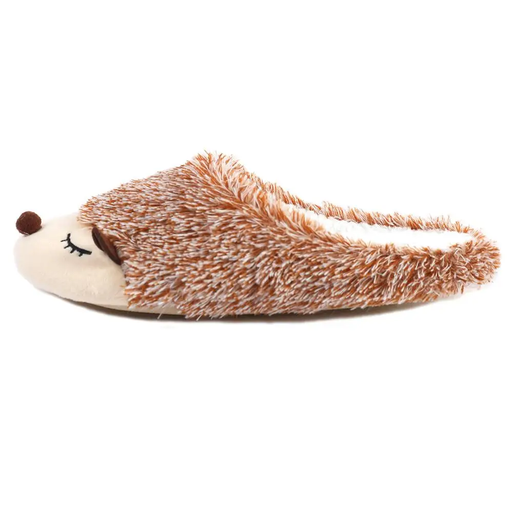 Милые коричневые домашние тапочки Millffy с рисунком ежика; Теплые домашние тапочки; Плюшевые тапочки с рисунком; Женские тапочки с животными
