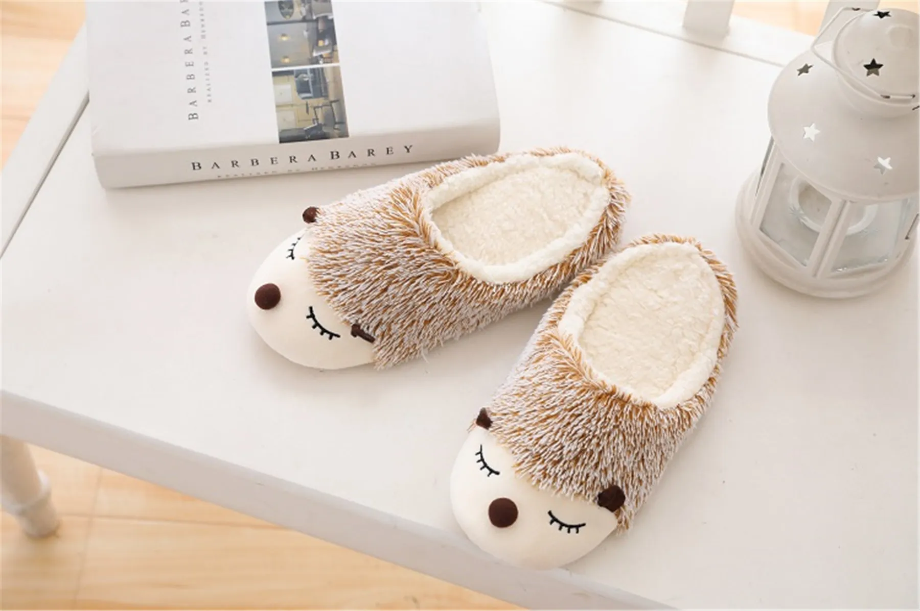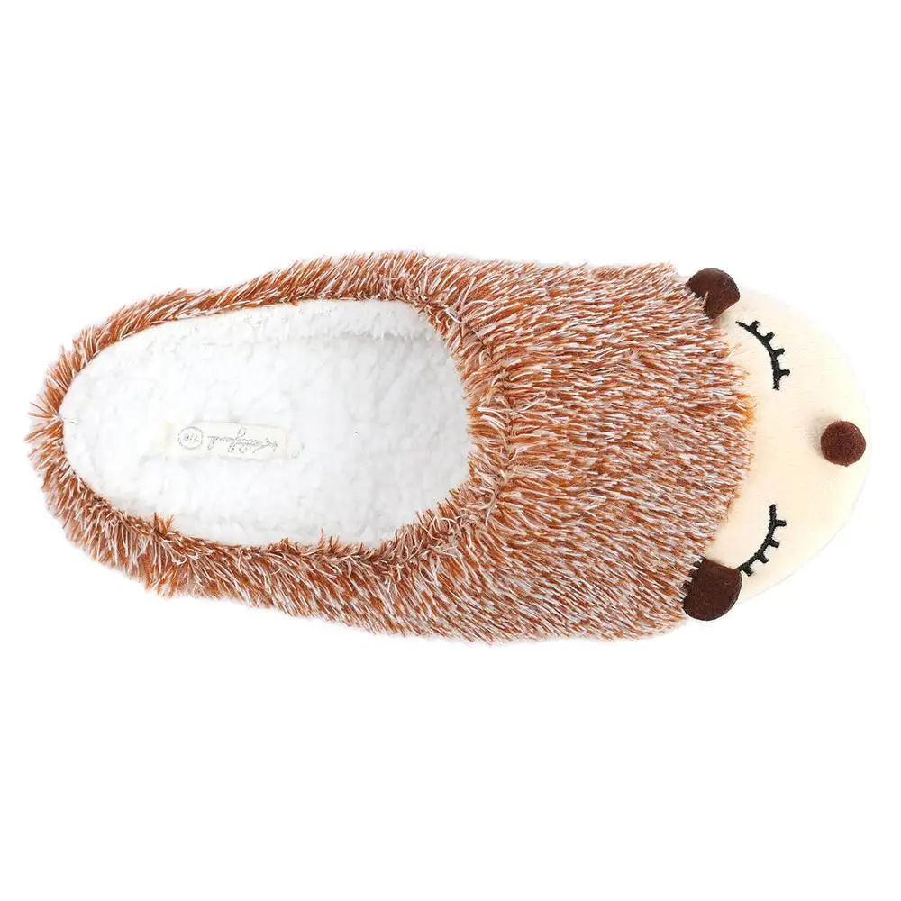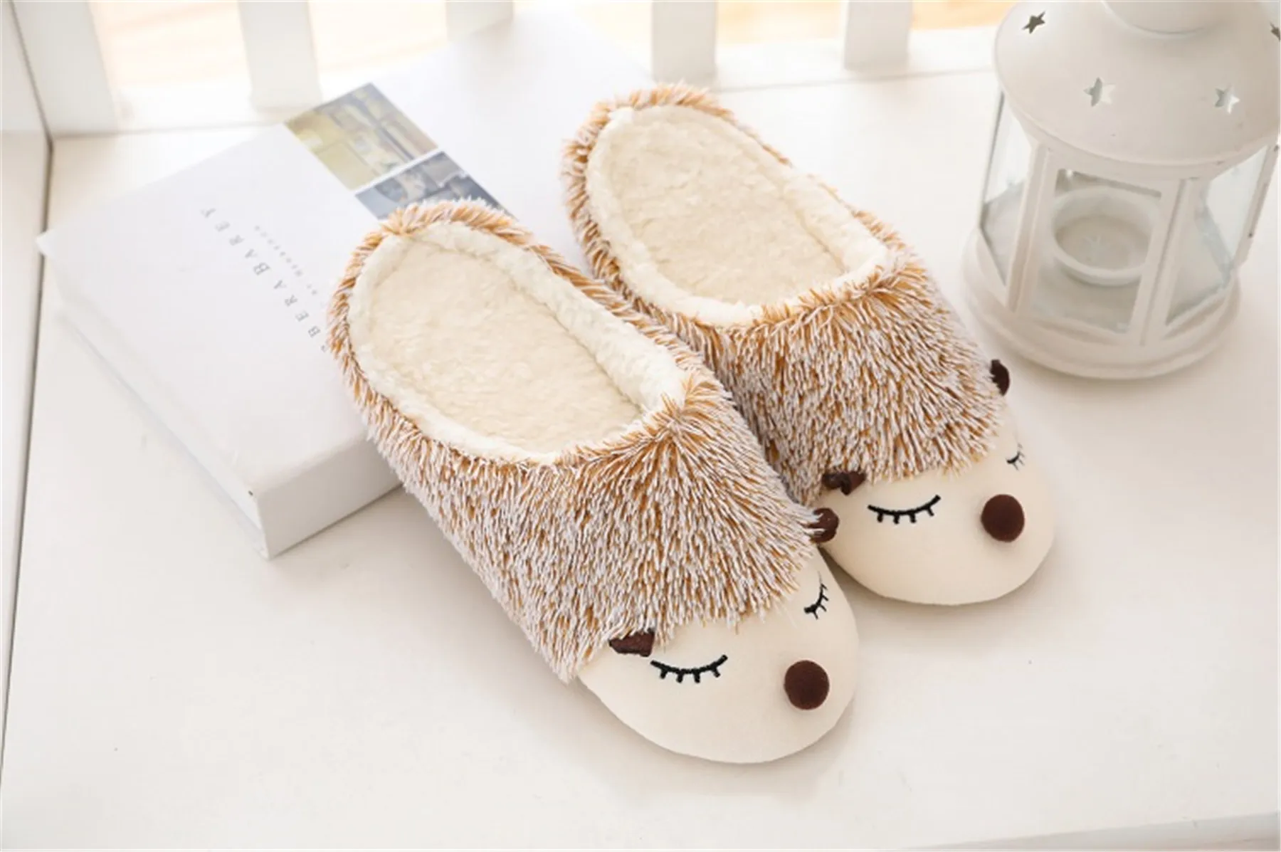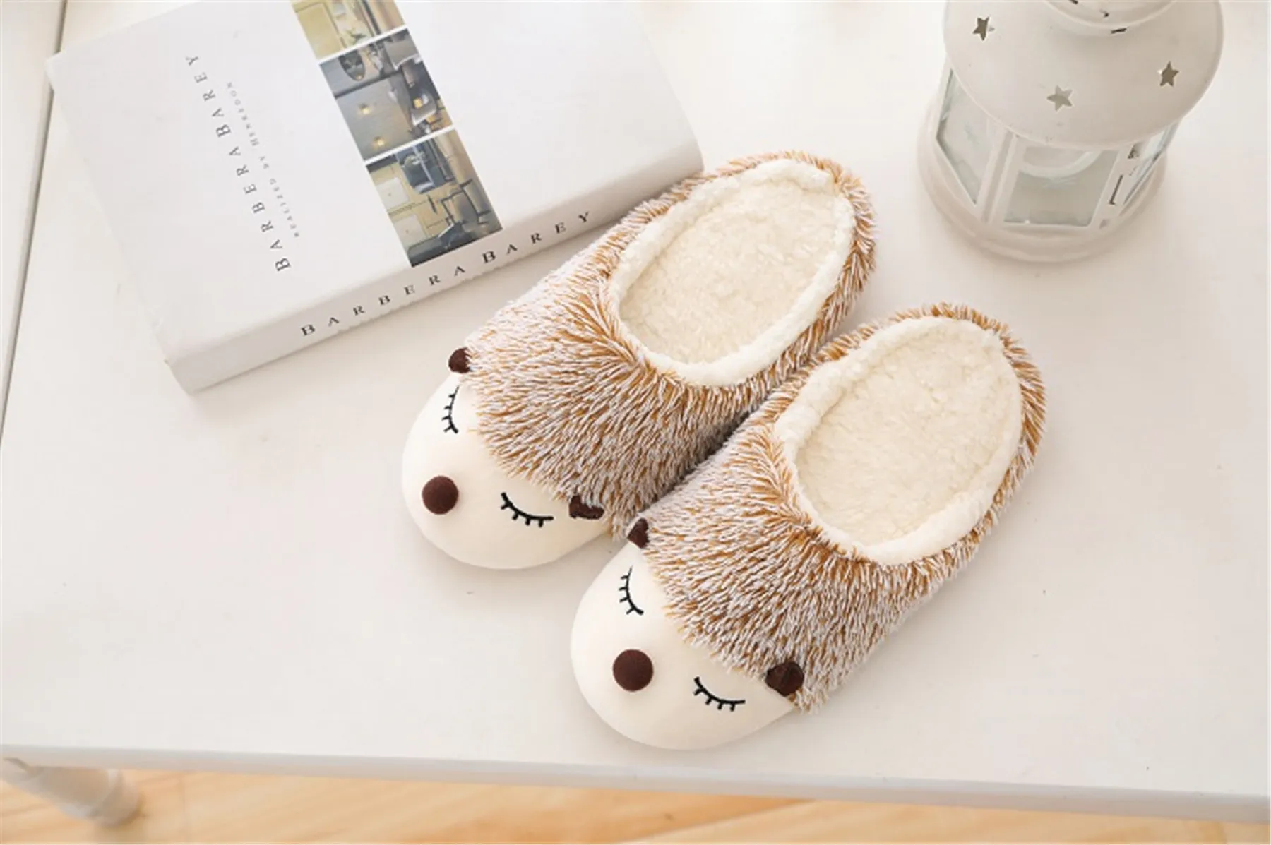 Милые коричневые домашние тапочки Millffy с рисунком ежика; Теплые домашние тапочки; Плюшевые тапочки с рисунком; Женские тапочки с животными