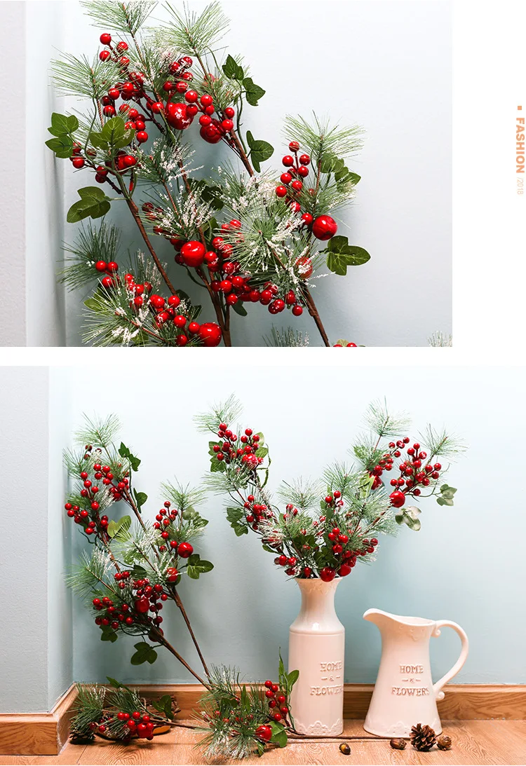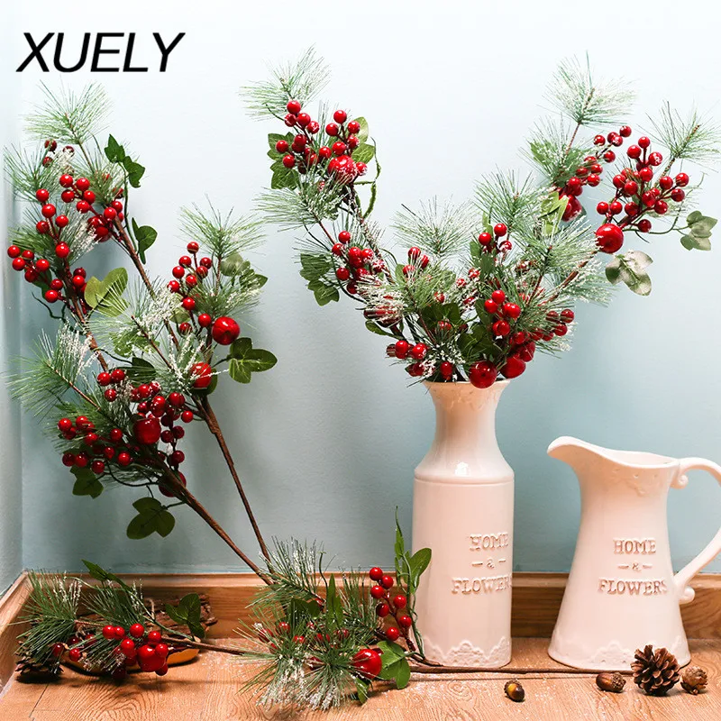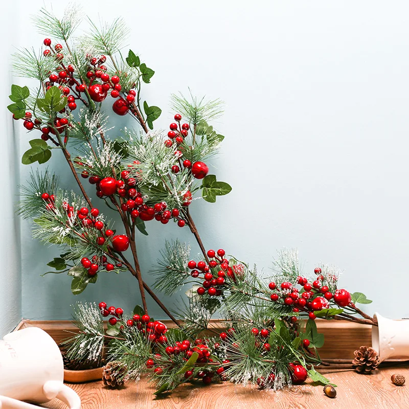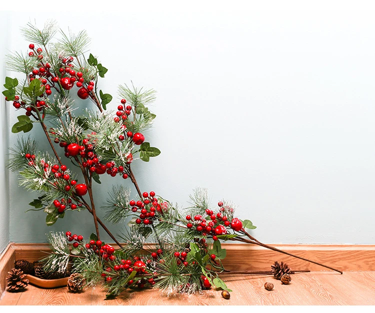 Рождественская имитация ягод, ярко-красная ягода, цветок, ветка магазина, праздничные украшения, аксессуары для домашнего декора