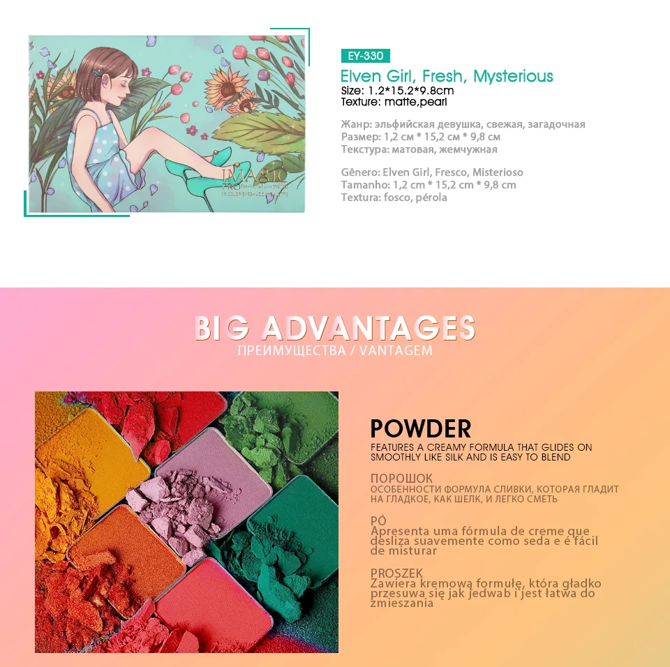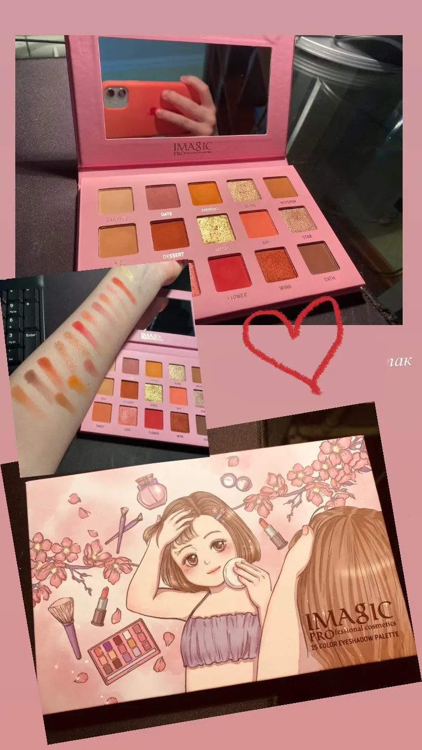 Отличные тени! Пришли за две недели, упаковка была хорошая, плотная, в несколько слоев - плюс сама коробочка была дополнительно запакована в пластиковый кейс. Тени и зеркало закрыты защитной лентой, так что ничего не разбилось и не высыпалось. Текстура, яркость и насыщенность теней хорошие. Это уже вторая палетка, которую заказываю у Imagic, пока все очень нравится, рекомендую продавца ❤