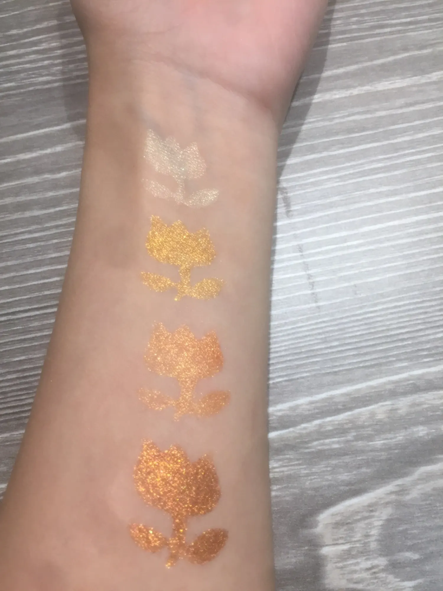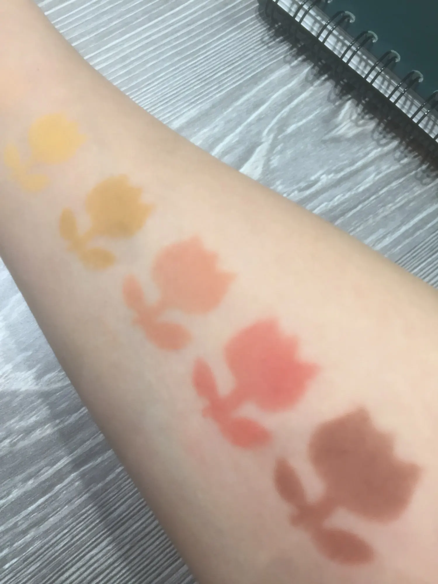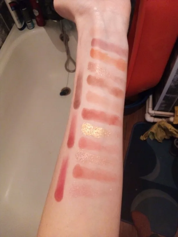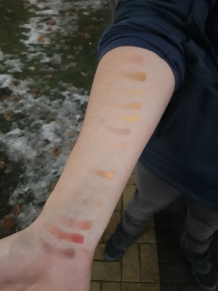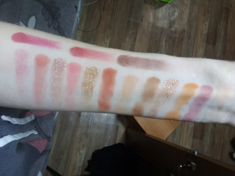 Отличная палетка, пришла быстро и хорошо запакованная. Текстура теней очень приятная, не сыпучая. Оттенки хорошо смешиваются между собой. Beach в тон моей кожи поэтому на свотче слился с рукой, I do на веках смотрится ярче, видимо тоже особенность цвета кожи на руке