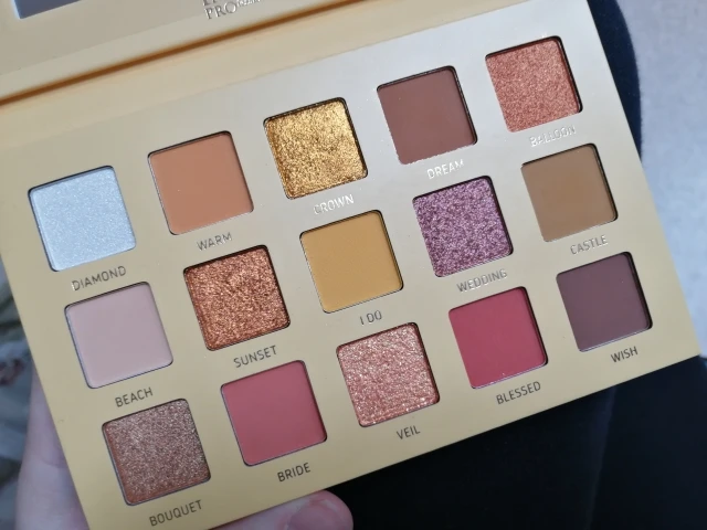 Палетка - бомба. Доставка в районі 14 днів. Нереальні шимерні кольори, золотий тв мідний- просто кохання. М'які, дуже приємно торкатися. Пегмантація теж гарна, жалітися немає на що. Фото не здатне передати той ефект, який діють тіні. Кришка міцно тримається на магнітах, якісне виконання. Однозначно не остання покупка цього бренду.