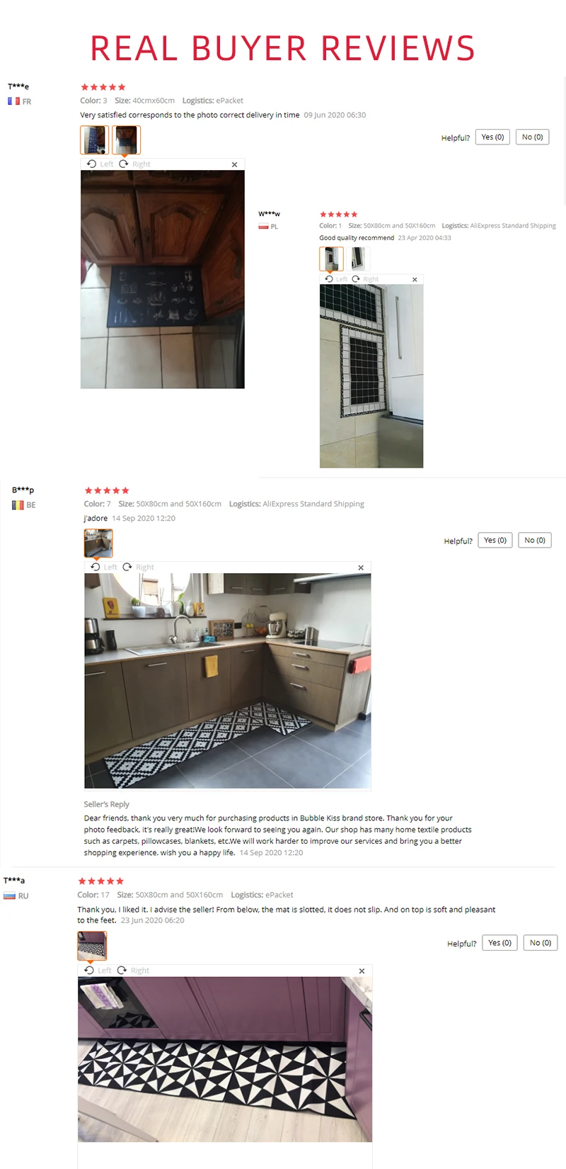 Посылка не занимает много времени, и продавец отправил ей подарок. Но за цену качество ковриков довольно плохое. Я ожидала что-то похожее на коврик для ванной, но он полностью гладкий. А также имеет запах, который, надеюсь, будет идти со временем.