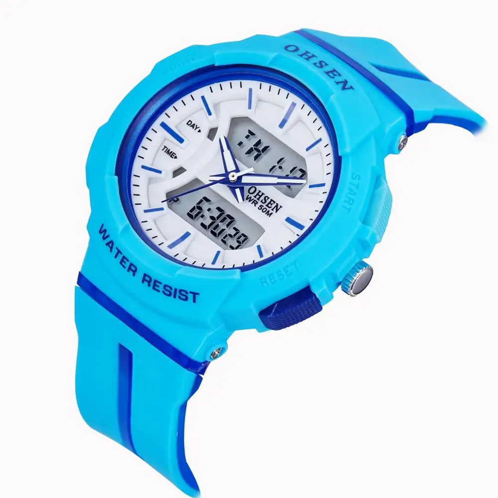 Новые цифровые кварцевые детские спортивные наручные часы ohsen для мальчиков с силиконовым ремешком 50 м Водонепроницаемые Синие уличные часы для плавания студенческие часы детские подарки