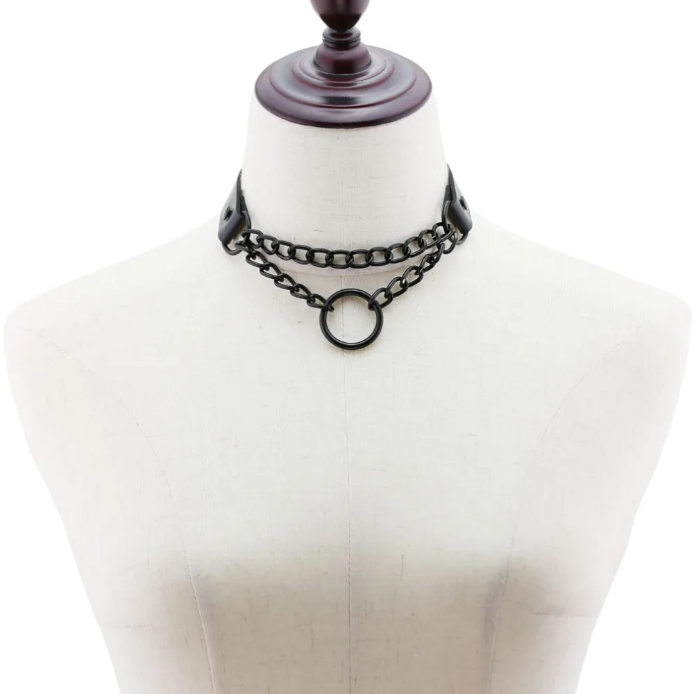 Женский ошейник-чокер с круглым вырезом, черный кожаный ошейник в готическом стиле, украшение в стиле Харадзюку, 2019