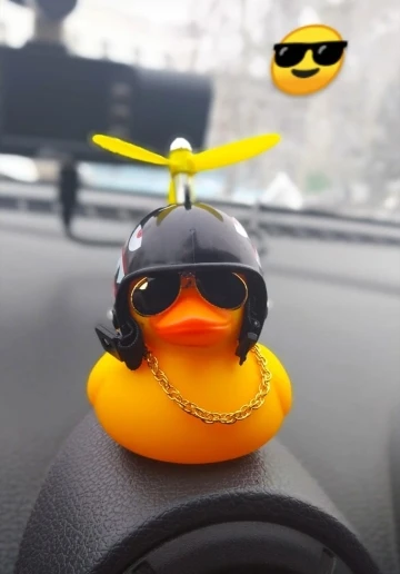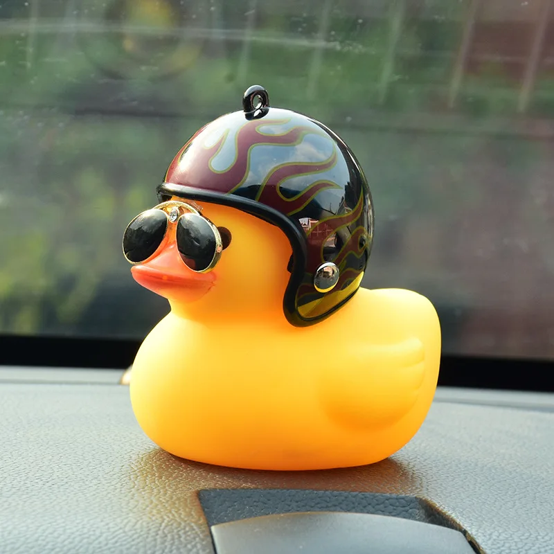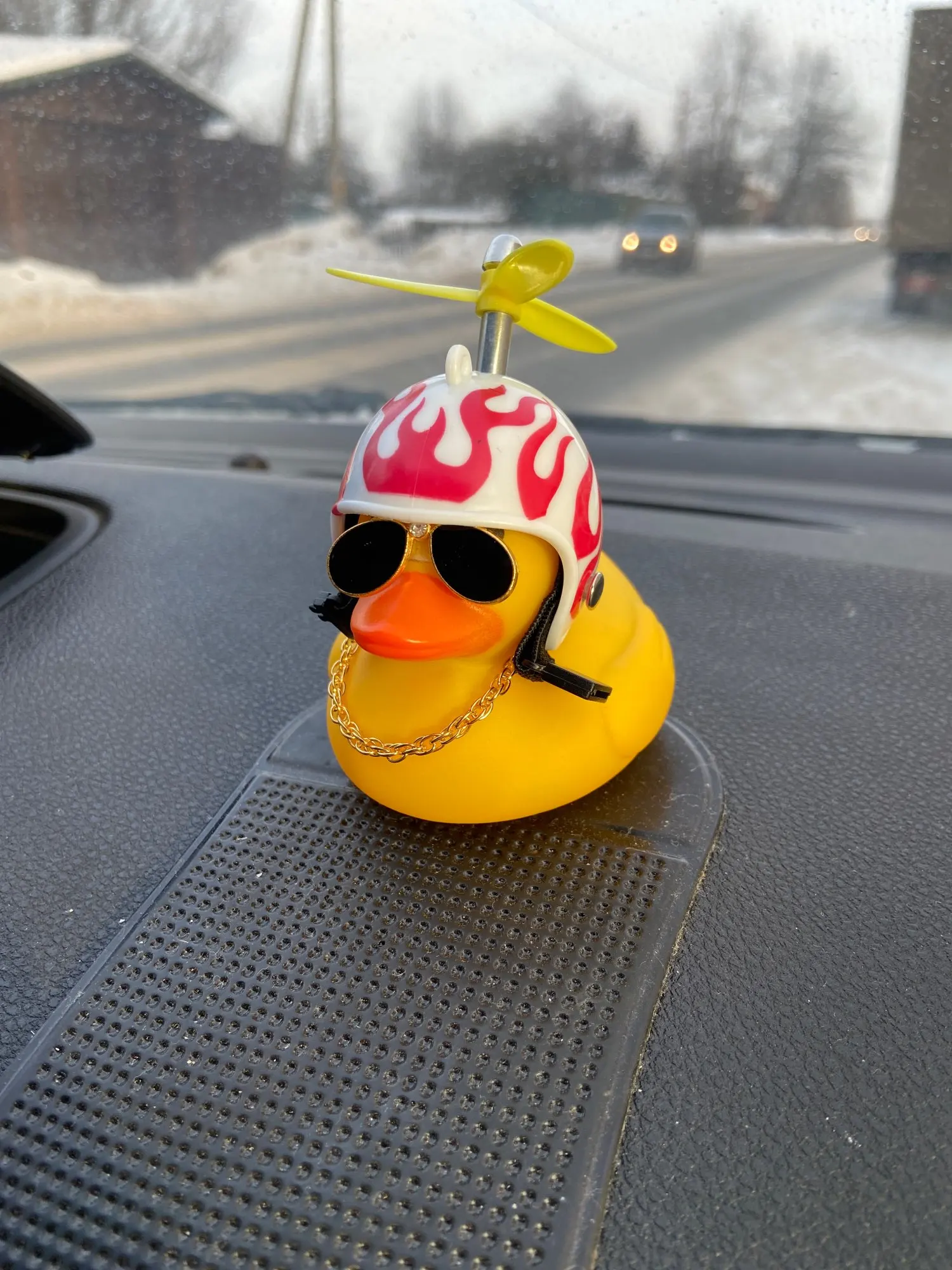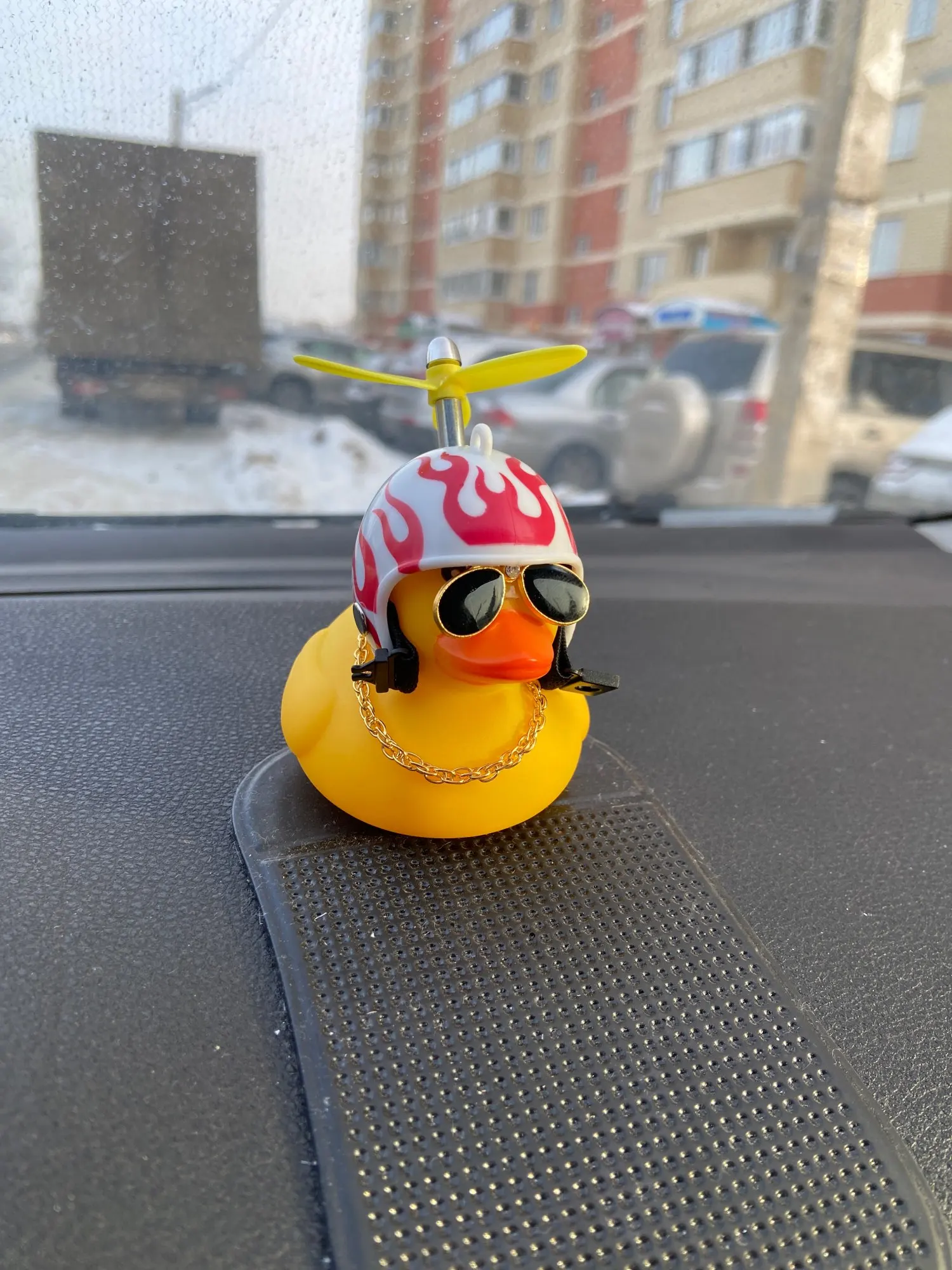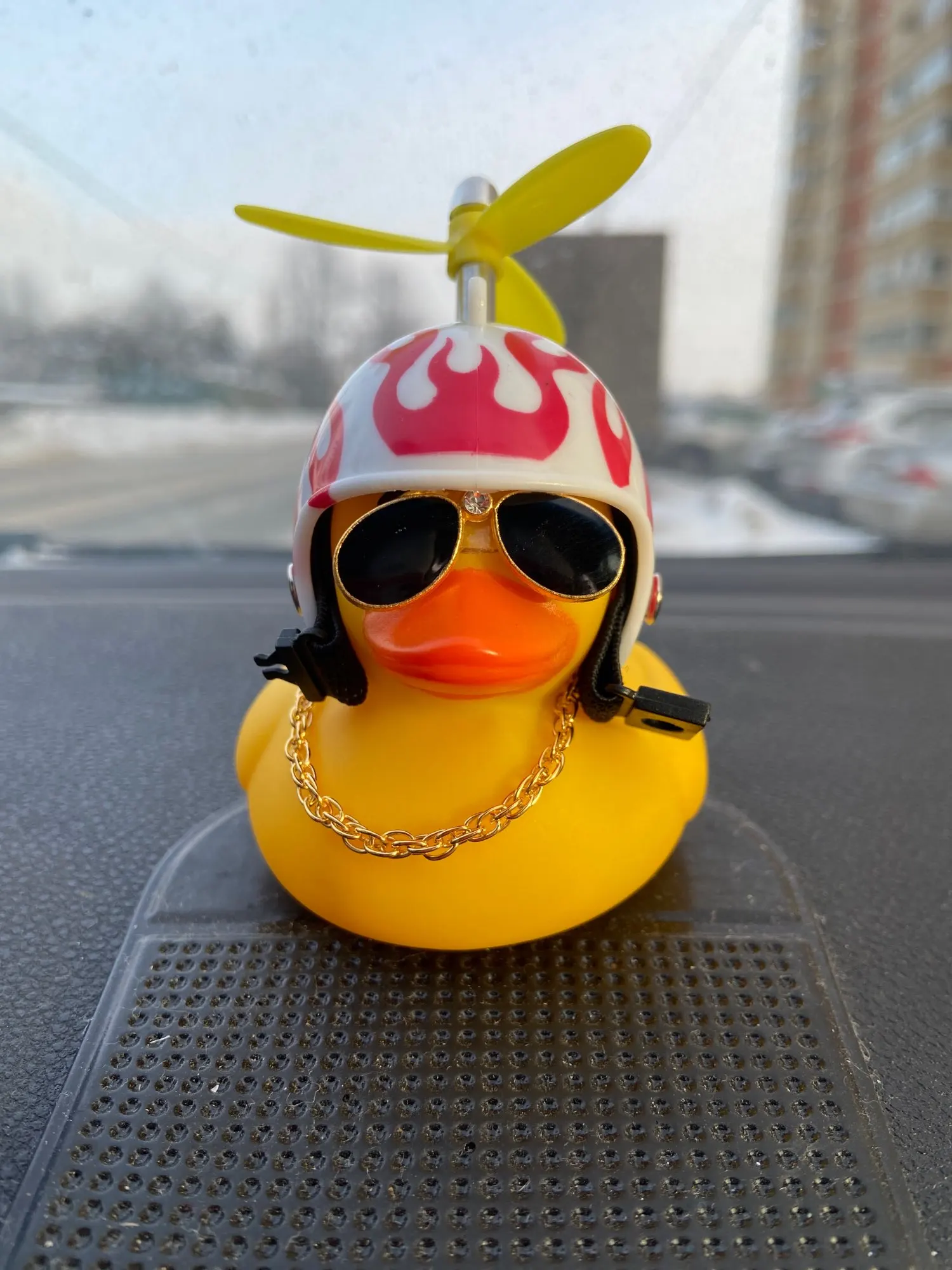 Счастливая утка в автомобиле утка на рулевом колесе в шлеме на велосипеде автомобиль украшение