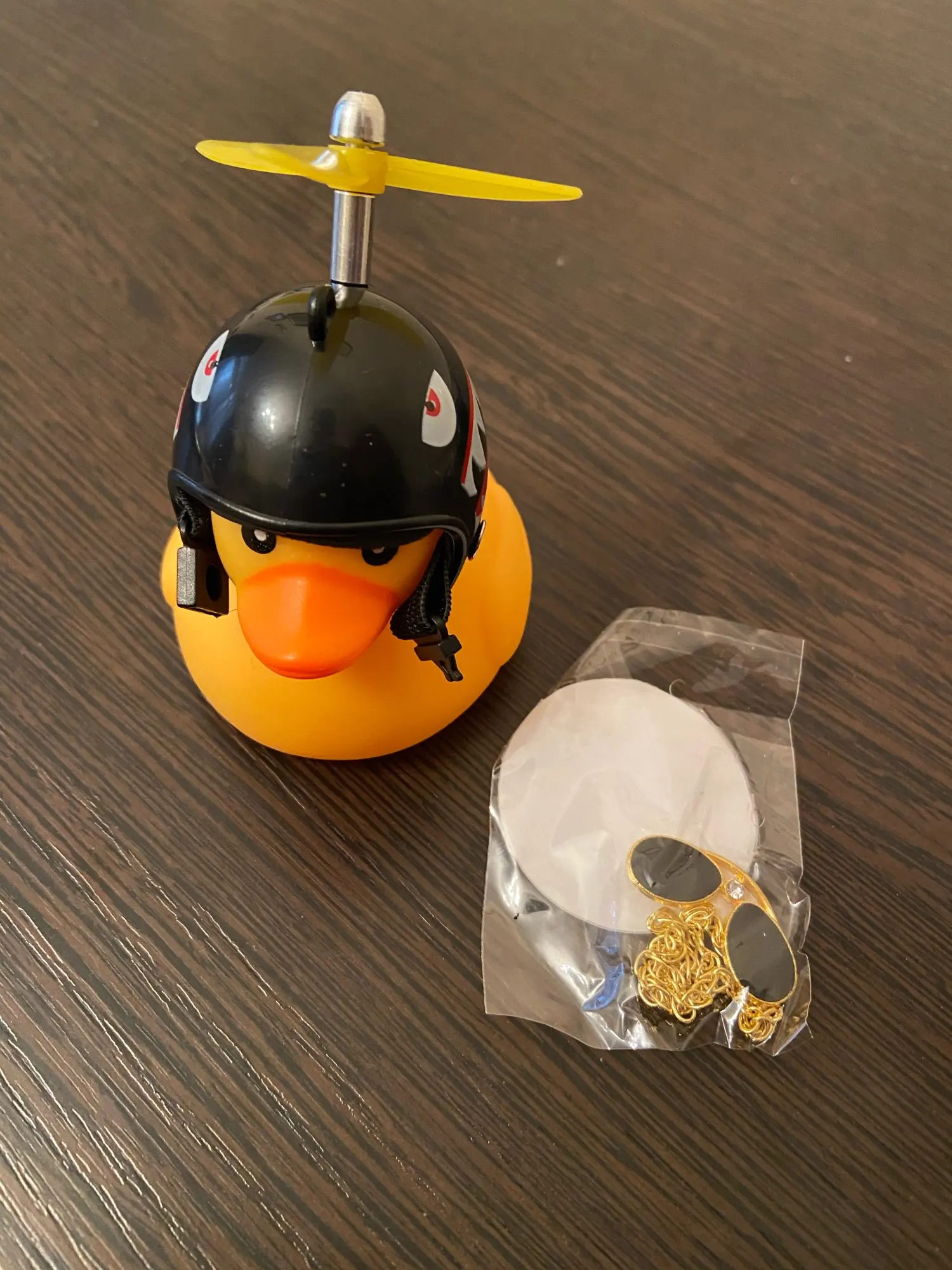 Доставка заняла где-то полтора месяца, уточка приехала вся замотанная в пупырку. Собрал, приклеил, наслаждаюсь. При нажатии ещё оказывается пищит.