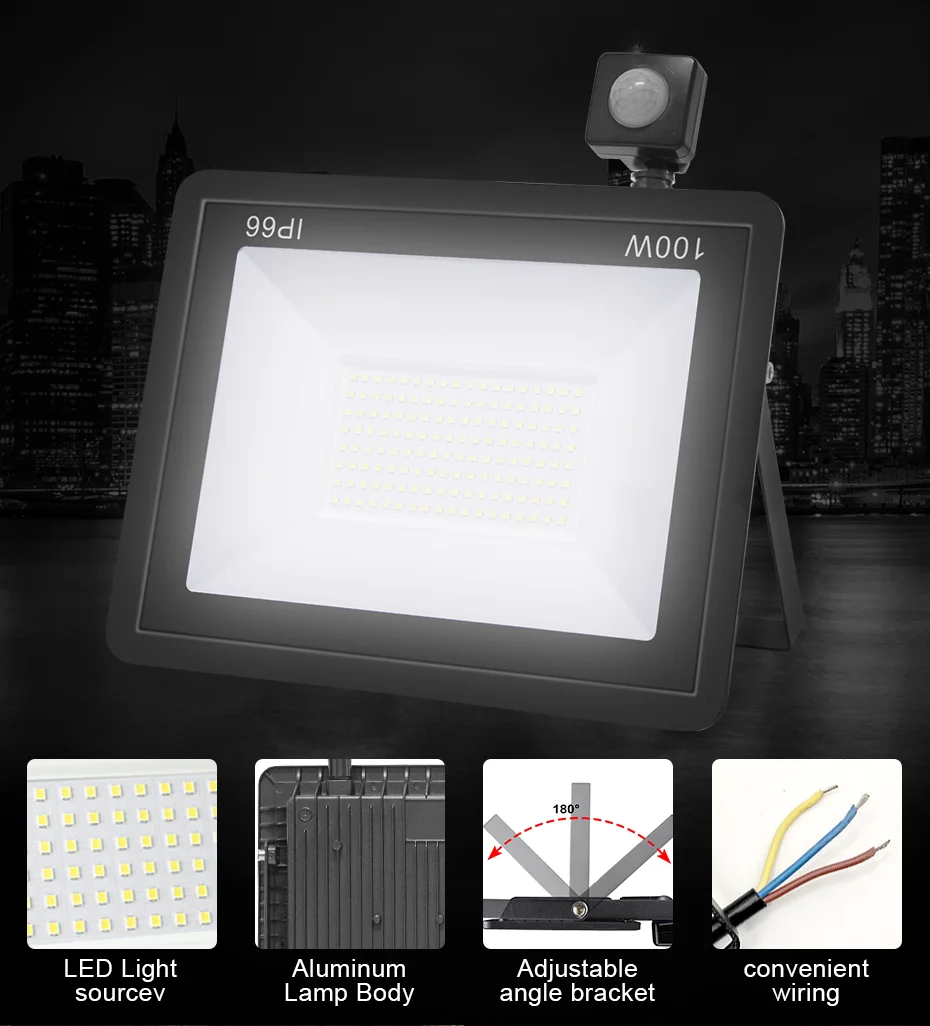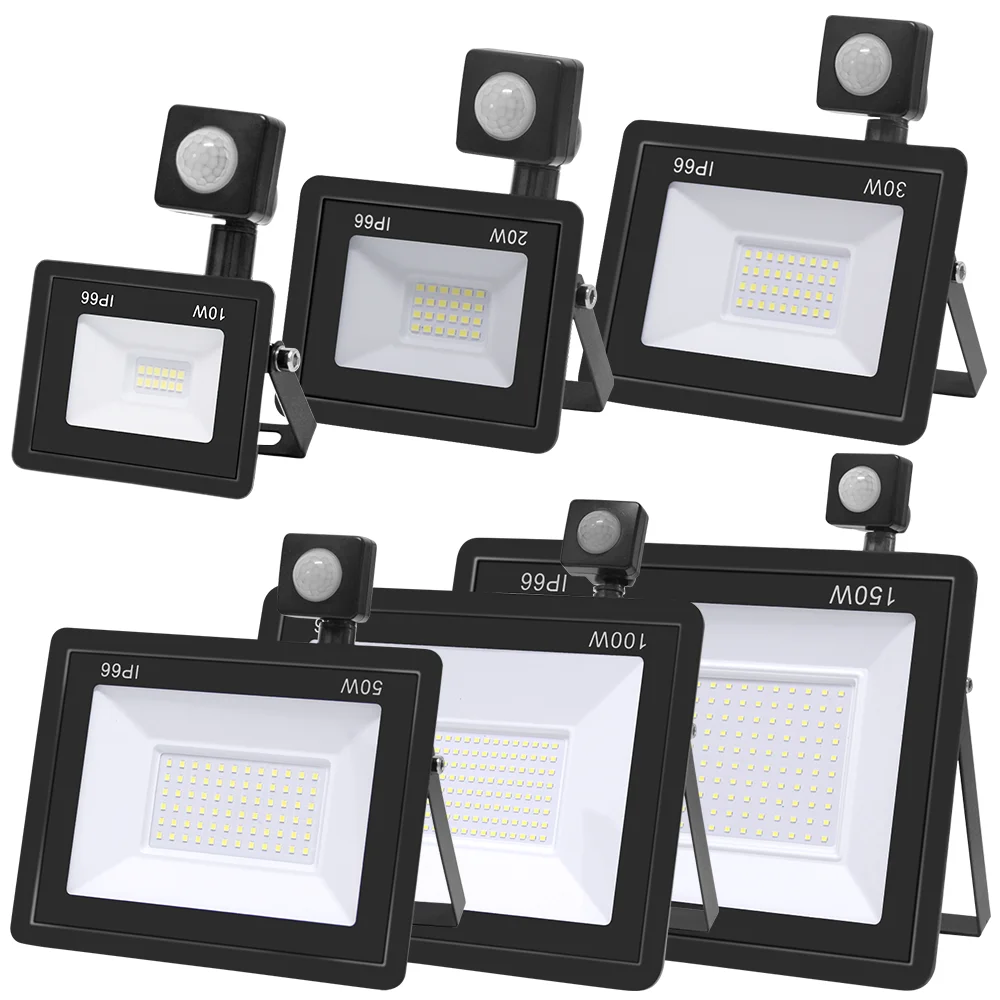 Светильник личный Светодиодный прожектор 220 В с датчиком движения, 10 Вт, 20 Вт, 30 Вт, 50 Вт, 100 Вт, 150 Вт, водонепроницаемый Светодиодный прожектор с детектором