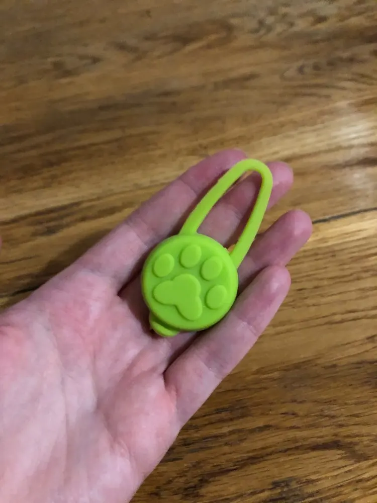 Заказан фонарик 14.09, в почтовый ящик кинули тоненький пакетик без пупырок 18.11. Фонарик достаточно объёмной и массивной смотрится, на маленькой собачке наверно будет не очень. Сделан из мягкого силикона, с обратной стороны кнопка для включения 3-х режимов подсветки: интенсивное мигание, слабое мигание и просто свечение.