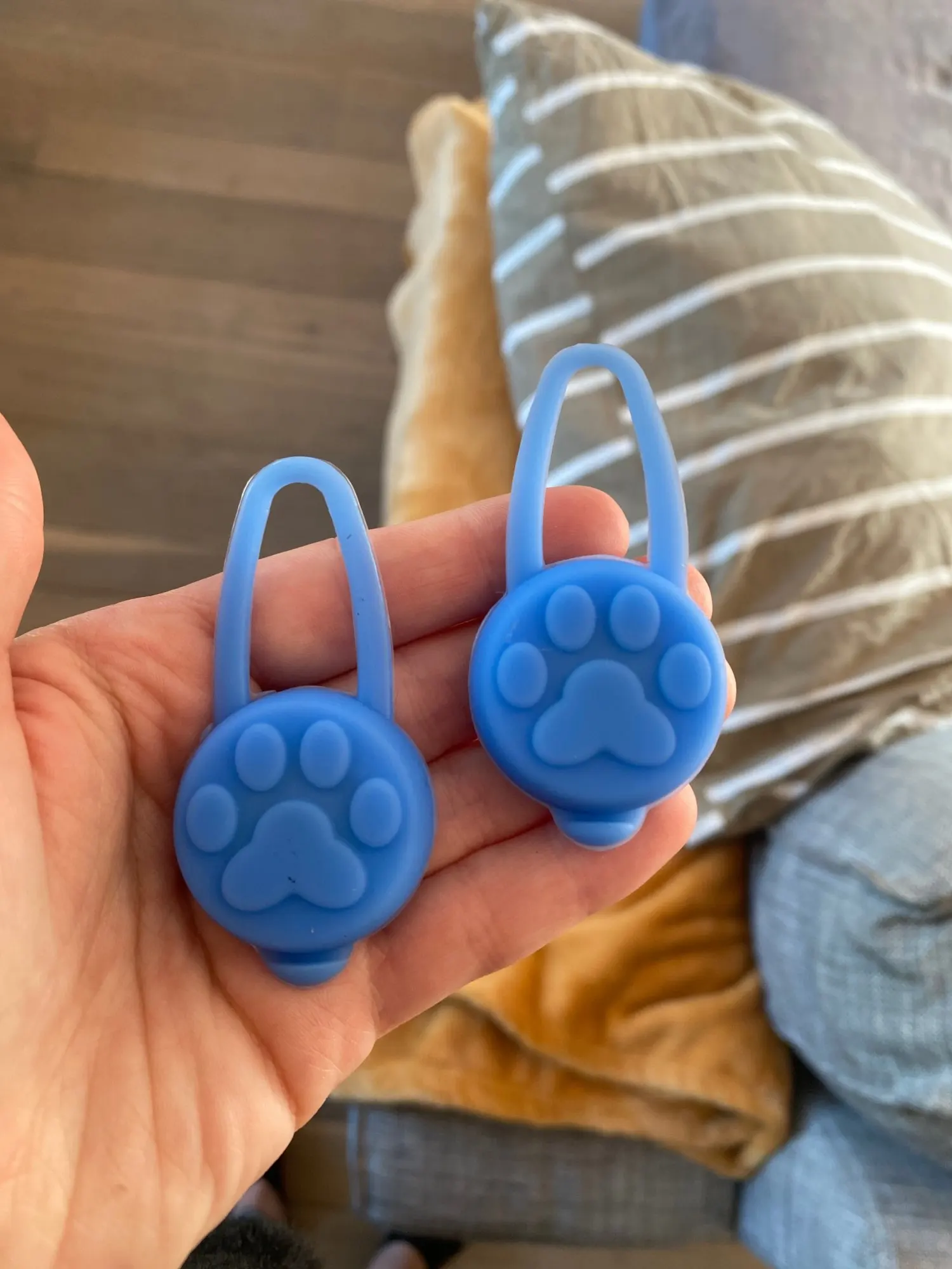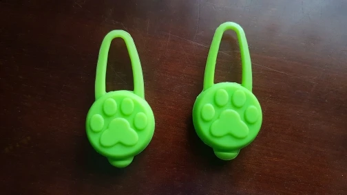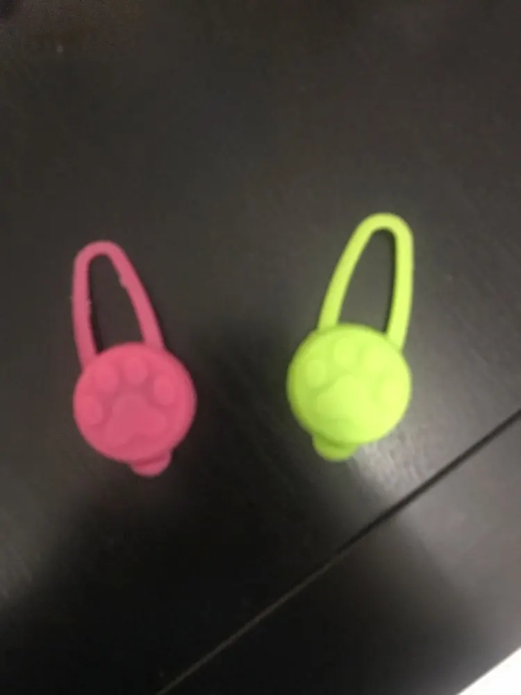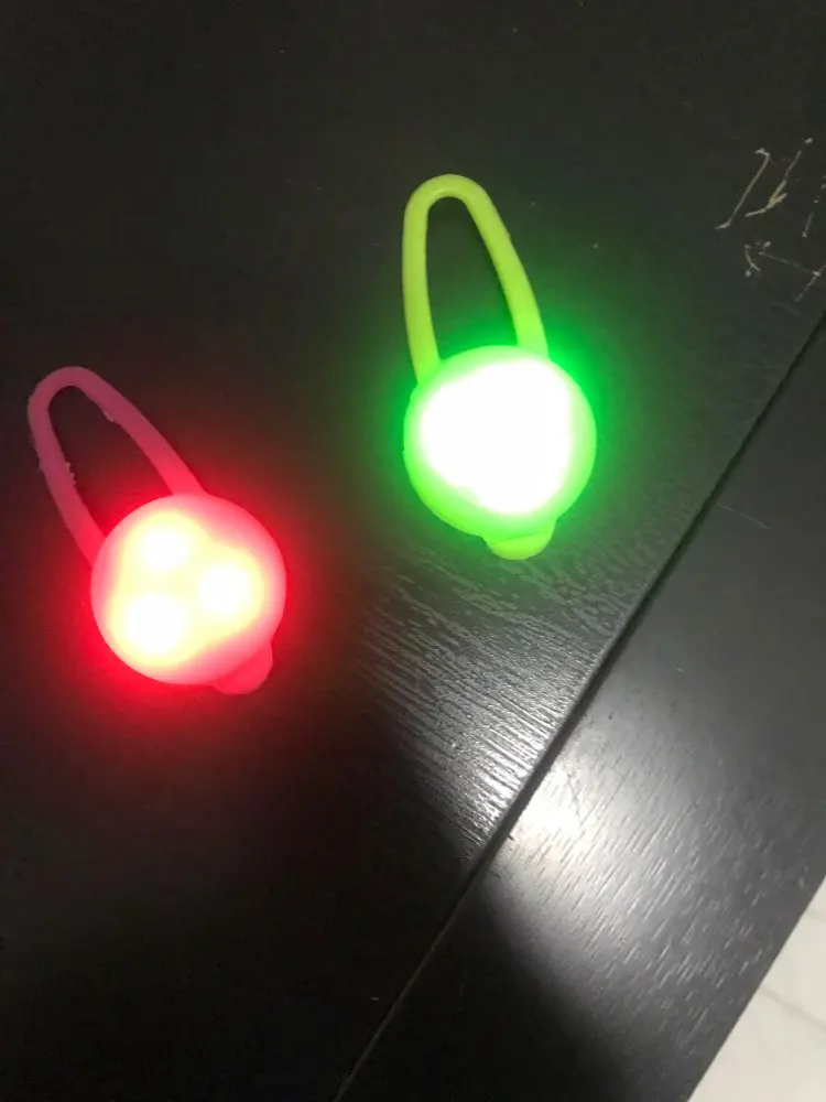 пришли вовремя, целые. мягкий силикон. была заглушка на батарейку. закрепились крепко, крепление тонкое, но вроде не рвется, эластичное. в глаза собакам не светит, собаки довольны)
