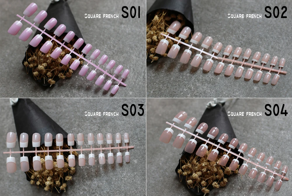 Ультрафиолетовые французские длинные квадратные накладные ногти светло-розовые накладные ногти телесного цвета свадебные ногти 24 шт. полный комплект