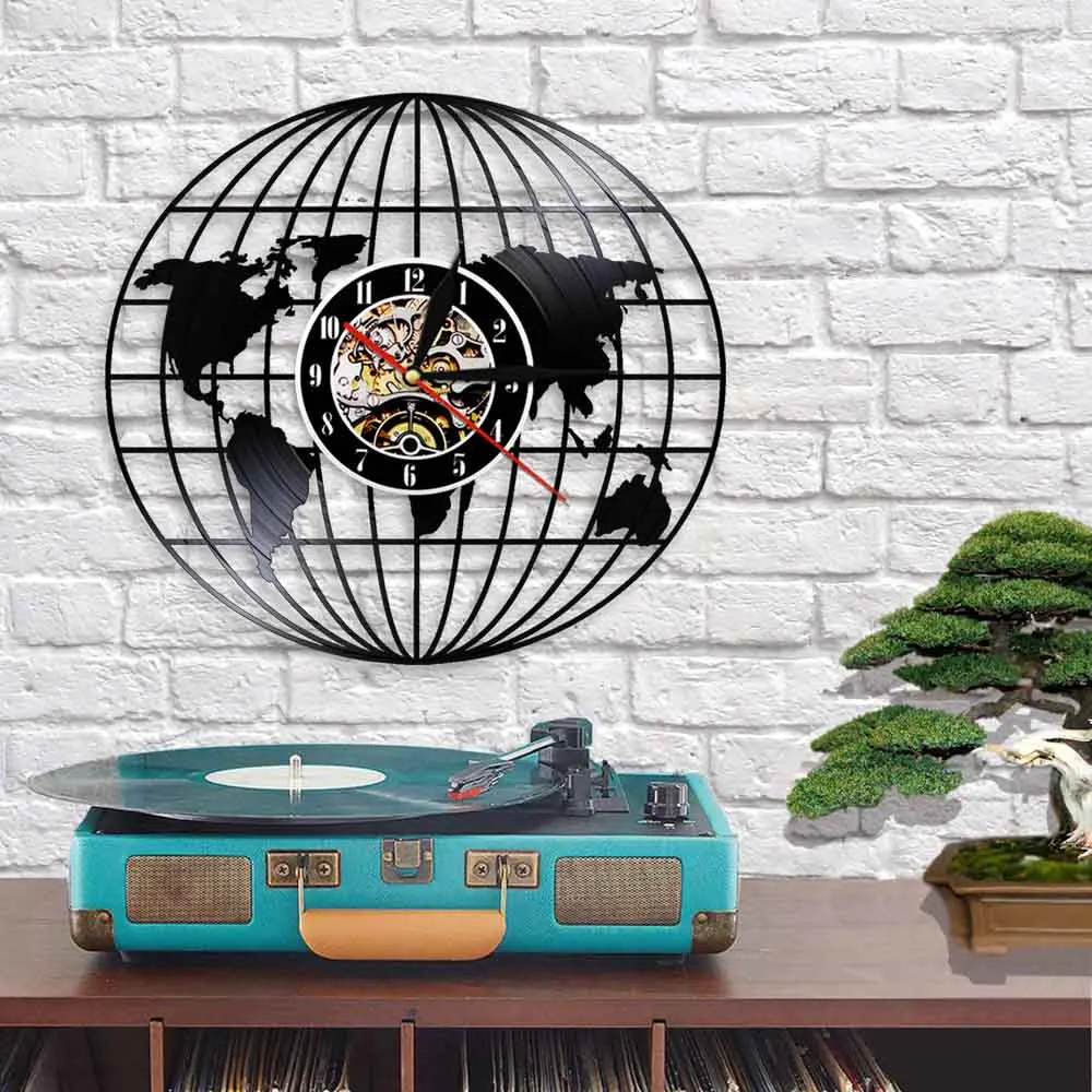 Карта мира Земля винтажные настенные часы с CD-диском и виниловой записью современные настенные часы для офисной комнаты фотография с фотографией альбом Longplay часы