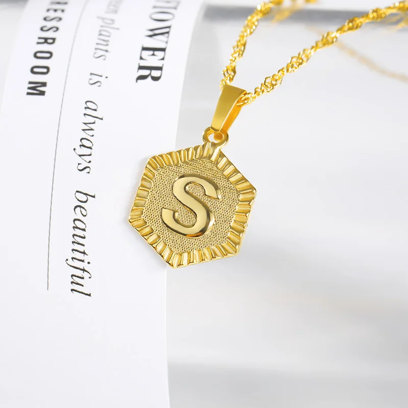 Золотая медаль ожерелье с буквами инициала кулон из нержавеющей ста...