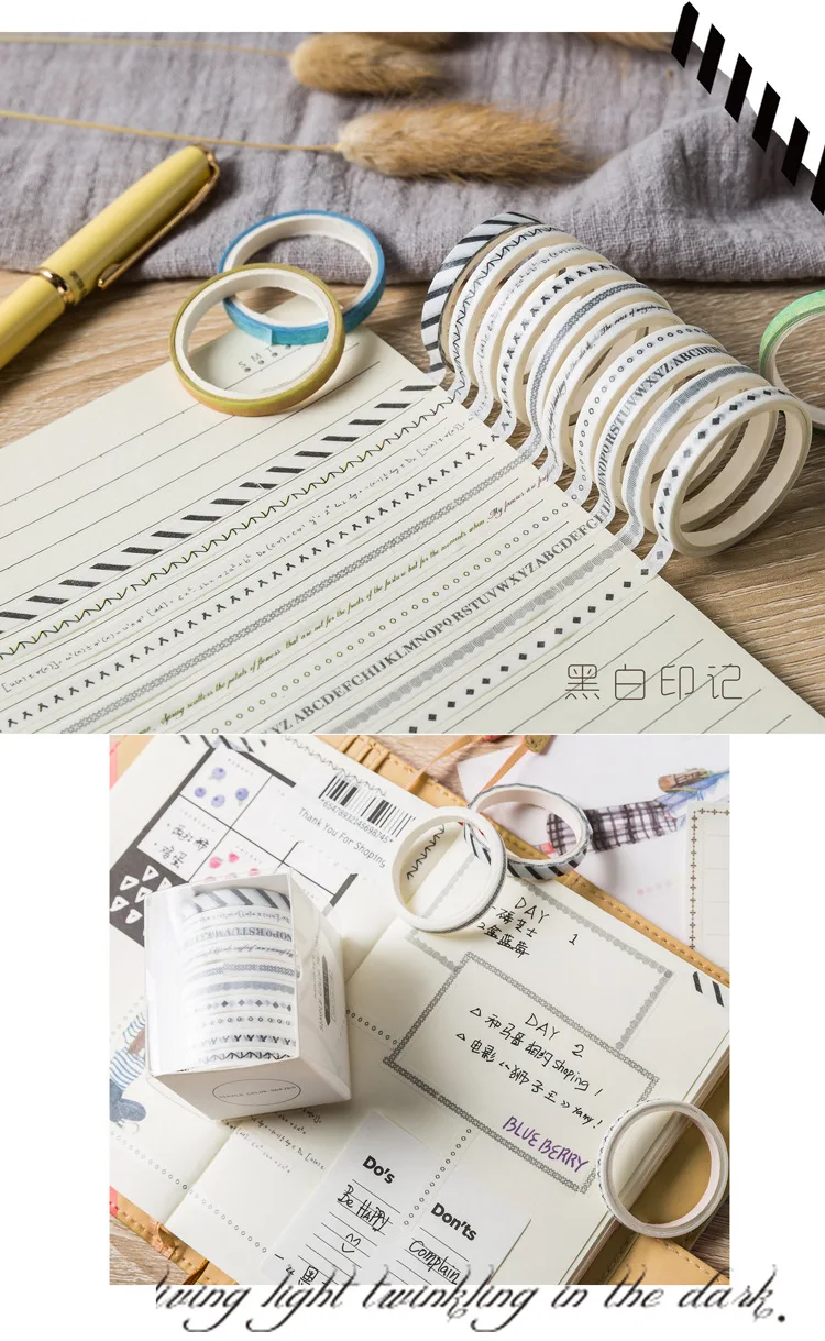 10 шт.лот, винтажная Геометрическая лента для скрапбукинга, клейкая лента для маскировки цветов и букв, для школы и офиса