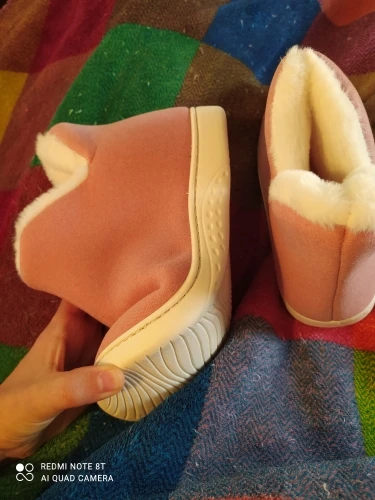 тапки нормальные, не скользят, для меня это важно, на размер 40 заказала 44, с теплым носком и без него нормально, но на кафеле в кухне в подошву холодно, если стоять долго. Буду добавлять стельку, верх очень теплый.