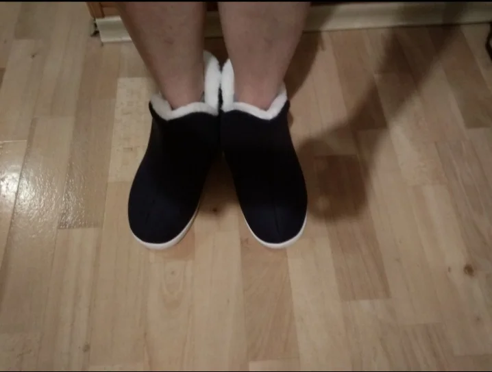 Отличные тапочки. Заказывала бабушке, поэтому в живую ещё не видела. На размер 36 (широкая нога) заказала 39 размер. Все подошло. По словам бабушки очень тёплые, из-за подошвы не скользят по полу.