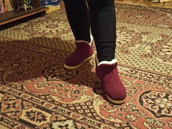 Очень удобные домашние сапожки, в которых можно и в магазин и во двор выйти. Брала для соседки, она счастлива. Очень мягкие и теплые, легкие, для дома и для зимы то что надо. По цвету светлее чем на фото. По размеру подошли, брали кажется на 24.5 см стельки