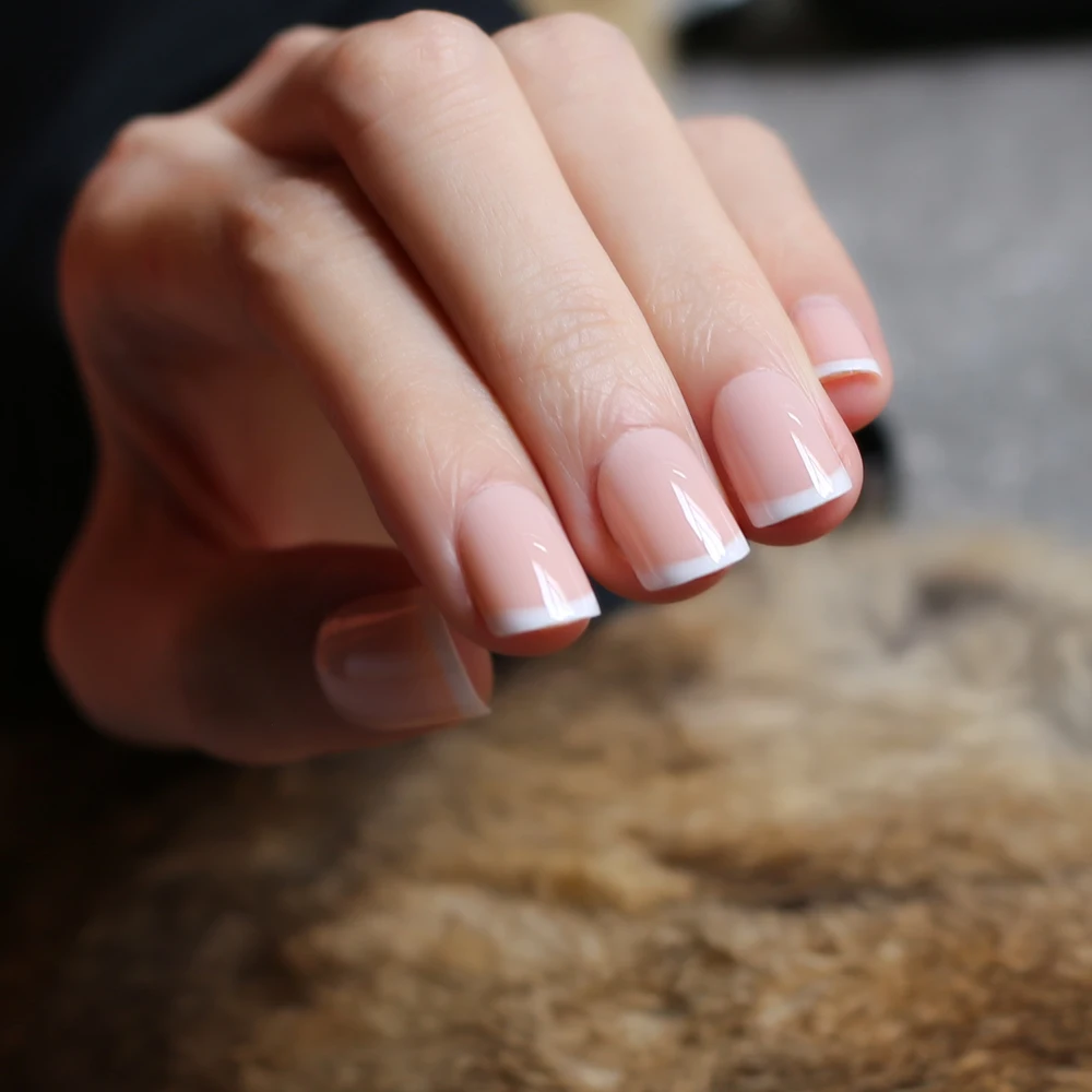 Короткие квадратные накладные ногти светло-розовые УФ французские накладные ногти 24 шт. полный набор обнаженных цветов яркие свадебные ногти