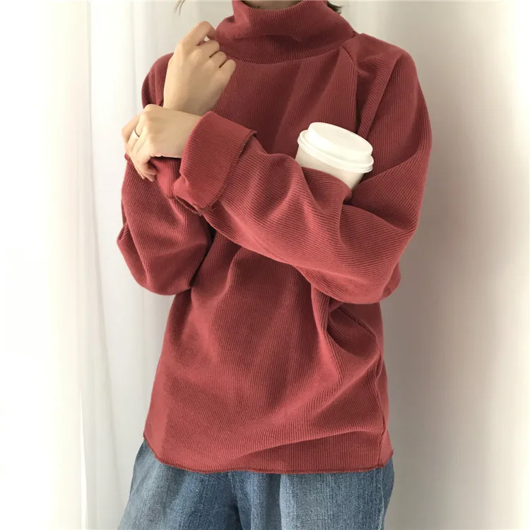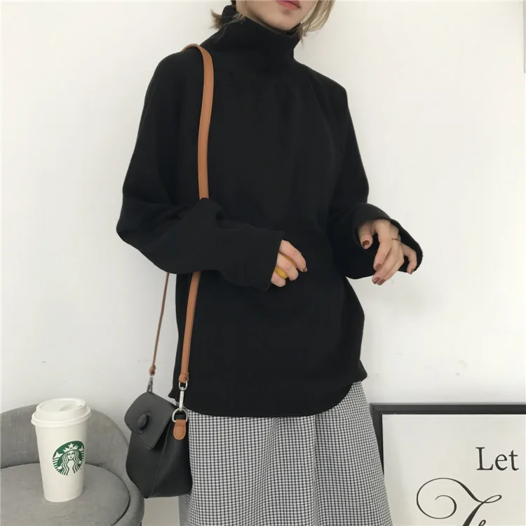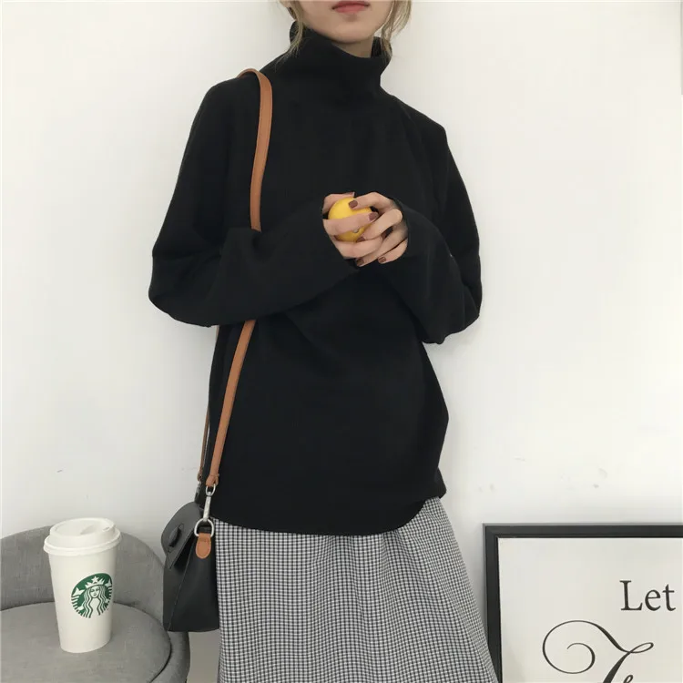 Свитер женский с высоким воротником, винтажный свободный плотный пу...