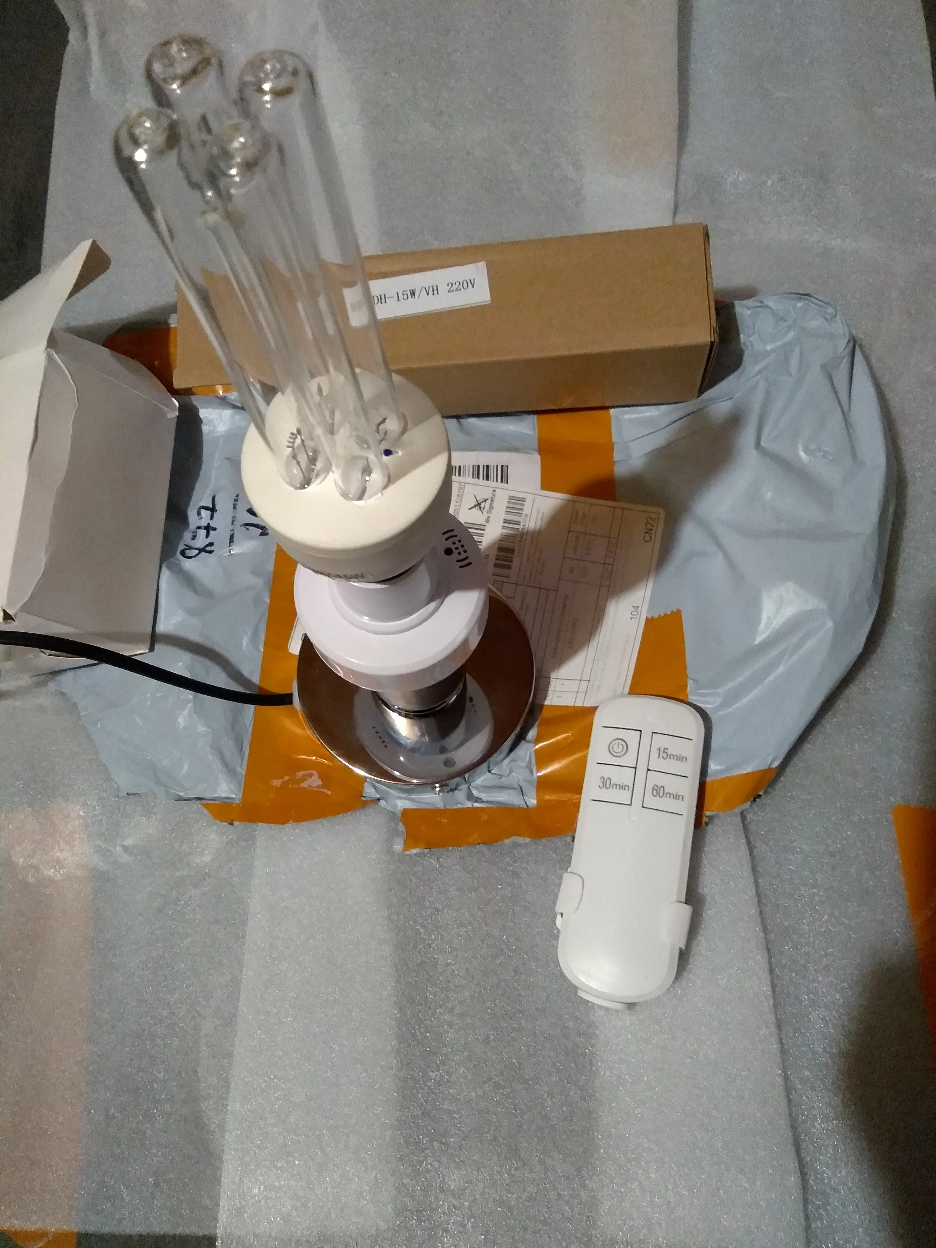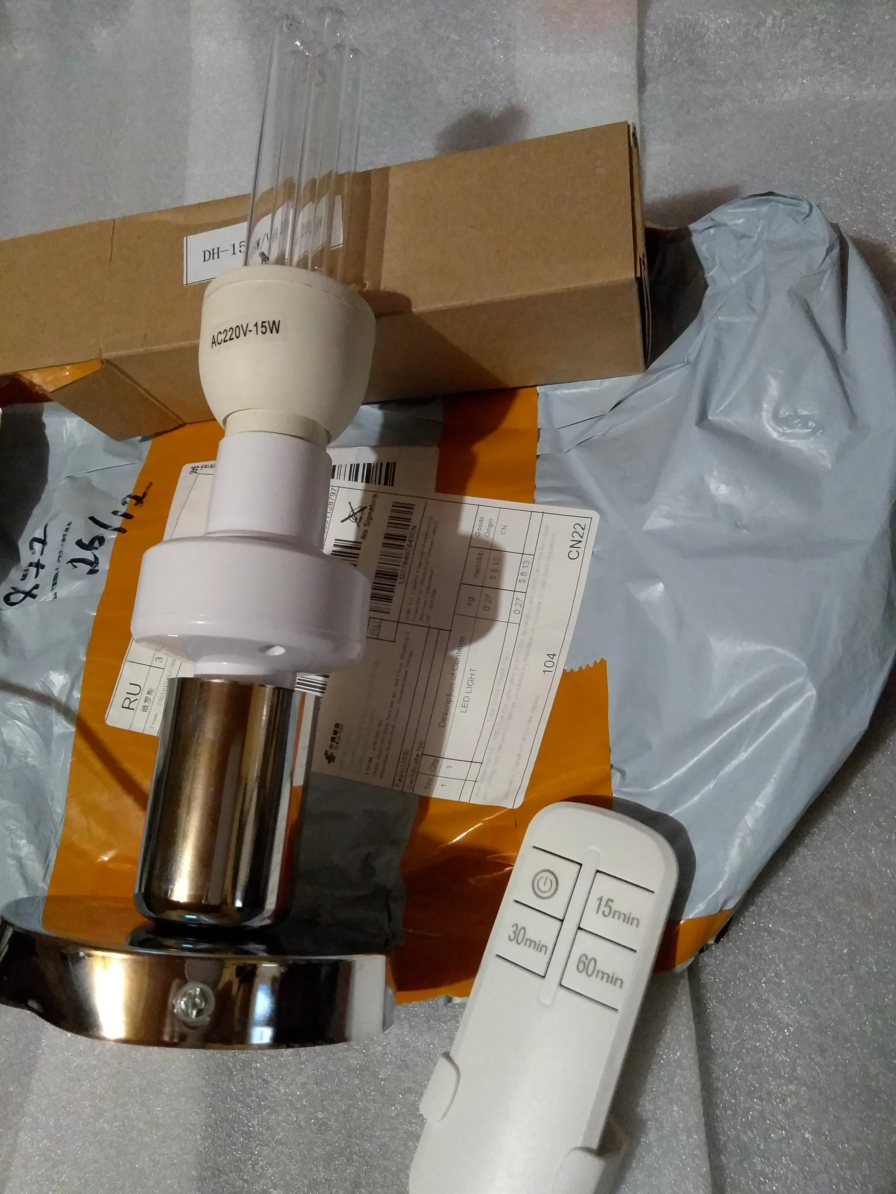 Очень хорошо упаковано. Пульт управления под конкретный переходник-включатель: брал 2 комплекта - под каждую лампу (переходник) свой. Идентификация по наклейке со штрихкодом на пульте и на переходнике. Лампочка с озоном сразу выдает запах озона, так что нужно обязательно проветривать. Товар и продавца рекомендую