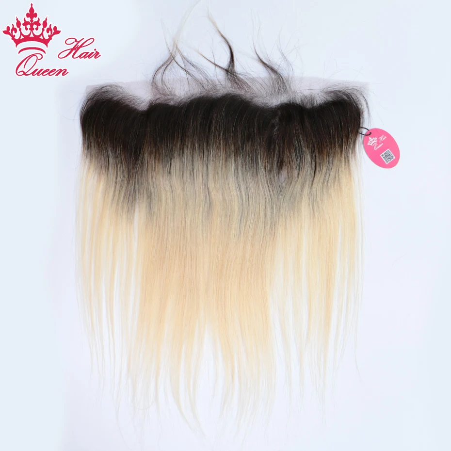 Товары Queen Hair бразильские прямые волосы omber #1B613 тон 13x4 кружевная Фронтальная застежка темные корни Remy человеческие волосы