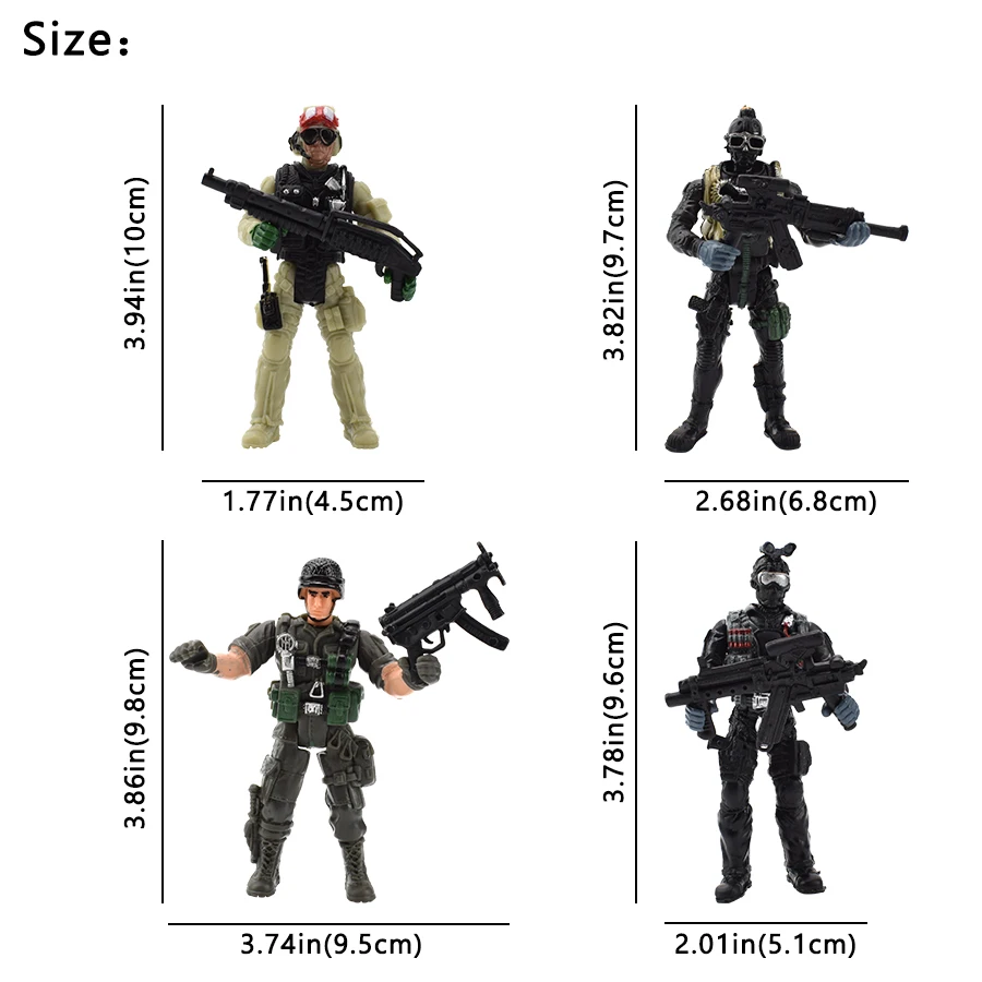 Хорошие солдатики, все 6 разные, двигаются руки, ноги, голова, не двигаются кисти рук и стопы ног) ребёнку понравились, не самый прочный пластик, но качество вполне, не хлипкие. Как бонус положили 3детских наклейки.
