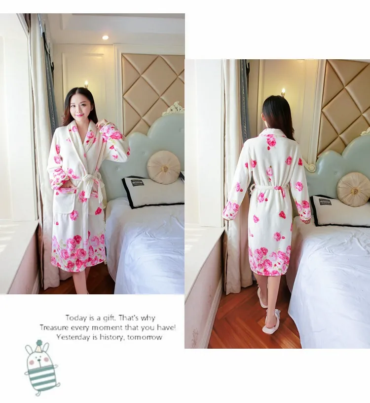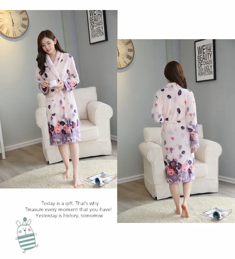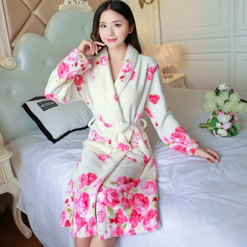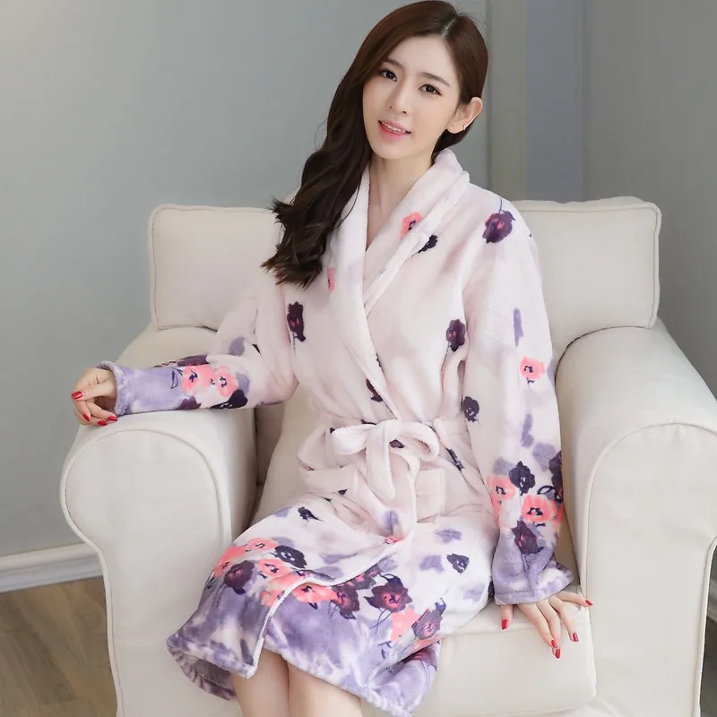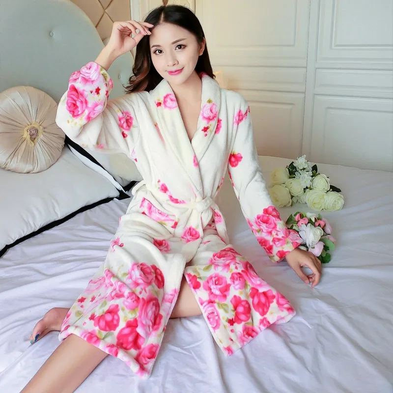 Женский фланелевый Халат-кимоно с длинным рукавом, теплый банный халат из кораллового бархата, домашняя одежда для сна, зима 2019