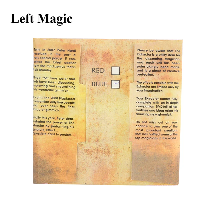Ваш экстрактор поставляется в комплекте с dvd-dvd, полным советов и эффектов Питера Нарди, Марка элсдона, Гари Джонса, Криса Хардинга и Криса Конгрива. Эффекты включают в себя фирменный эффект Питера, о котором говорилось ранее, версия Mark's show-stopper «Harry In Your Pocket', невероятное транспозирование/предсказание красной и синей колоды, гарантированное Расплавление мозгов ваших прослушивателей, плюс фантастические руки карты в кошелек, карты в карман зрителя, карты в обуви, на самом деле, карты практически в любом месте!