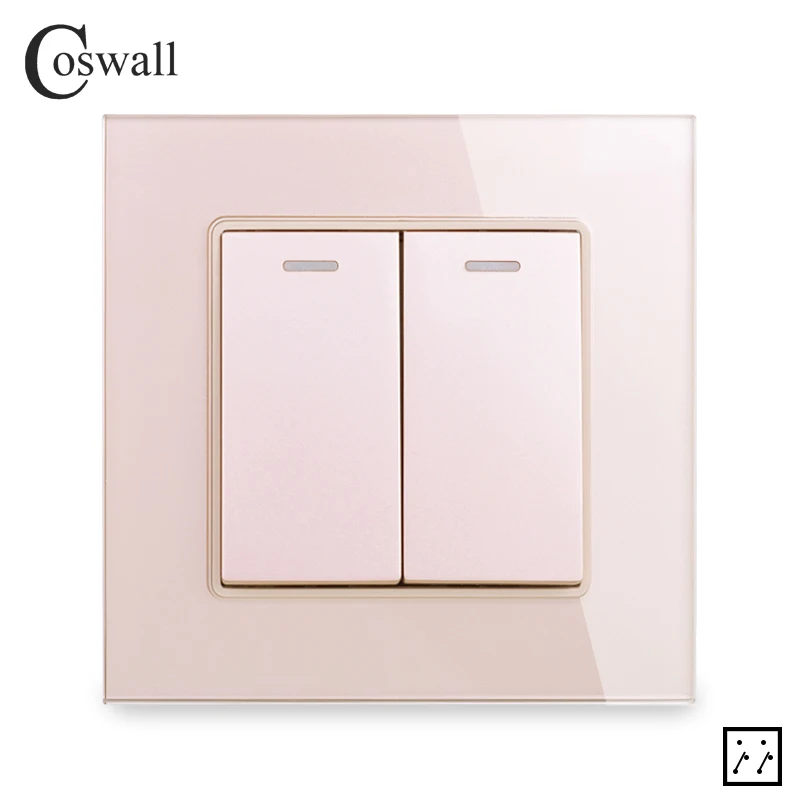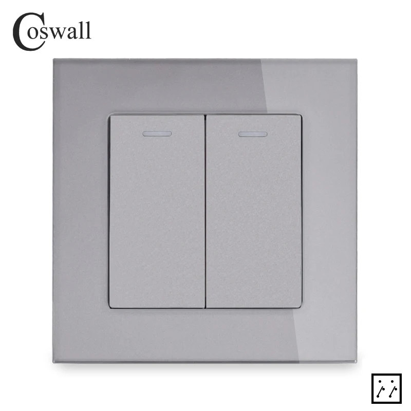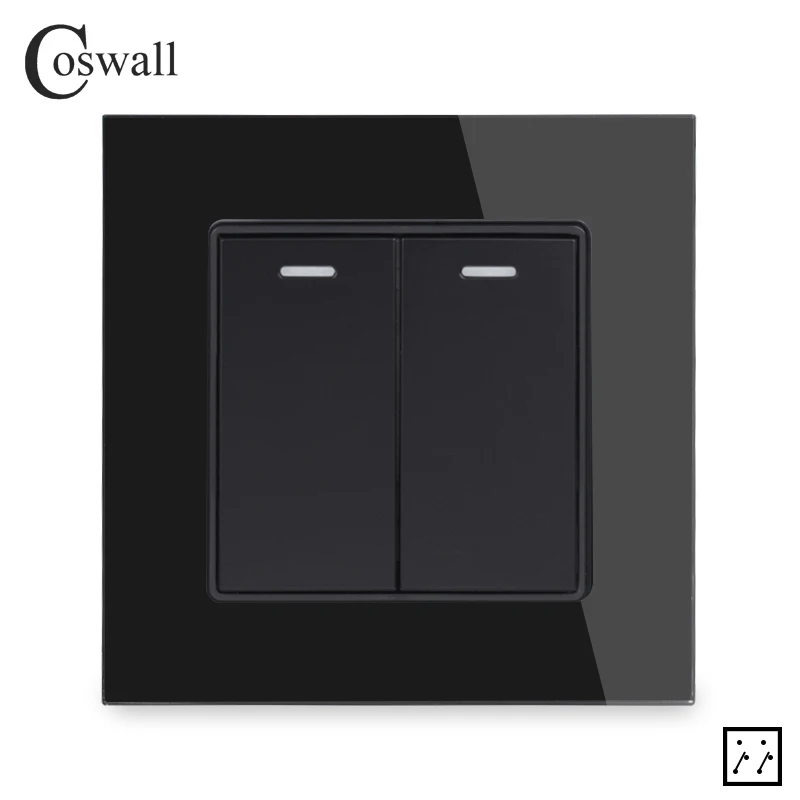 Панель из закаленного стекла Coswall, 2-х клавишный 3-ходовой промежуточный переключатель, задний переключатель света, настенный светильник ель, 16 А, серия C1