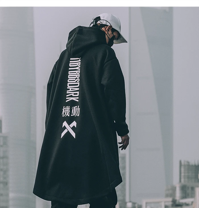 Плащ мужской, с вышивкой в стиле хип-хоп, с карманами