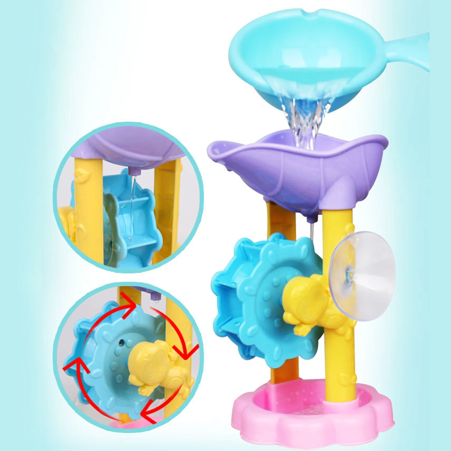 Когда вы налейте воду на водяное колесо с помощью прилагаемой лейки и ложки, колеса повернутся, заставит вашего ребенка смеяться и влюбиться в ванну.