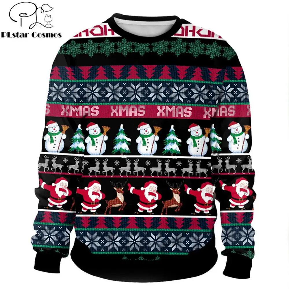 Новинка 2019, Рождественская модная толстовка, тренировочный костюм с 3D принтом Санта-Клауса и снеговика, верхняя одежда с длинным рукавом, уличная одежда унисекс