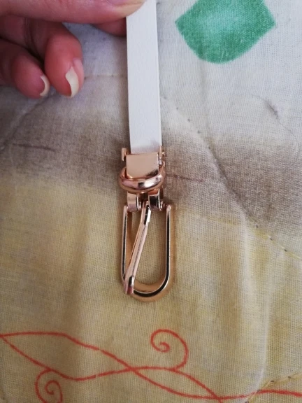 ремешок конечно хиленький, думала попрочнее будет. прям совсем слабенький. даже при первом использовании остался залом, да и верхнее покрытие легко соскребет после нескольких носок. если использовать без нагрузки, как декор, то ещё послужит. обратите внимание на ширину, она даже по ощущению чуть Уже заявленной.