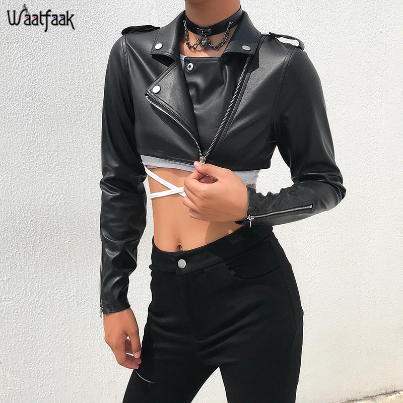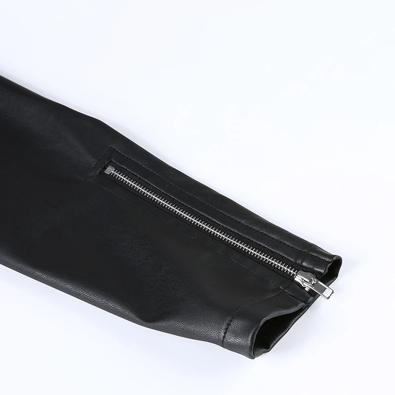 Куртка-бомбер женская кожаная на молнии, с длинным рукавом