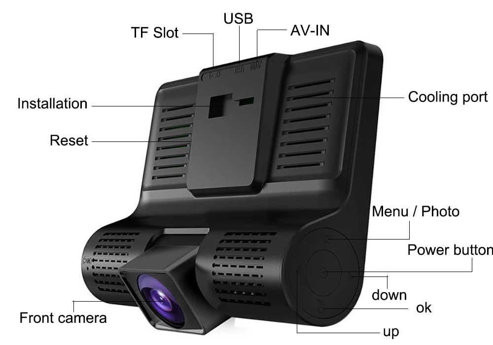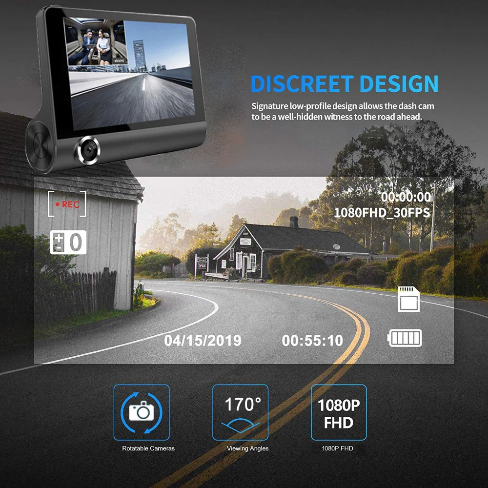 Видеорегистратор, 3 камеры s, 4,0 дюйма, 1080P, с двумя объективами, с камерой заднего вида