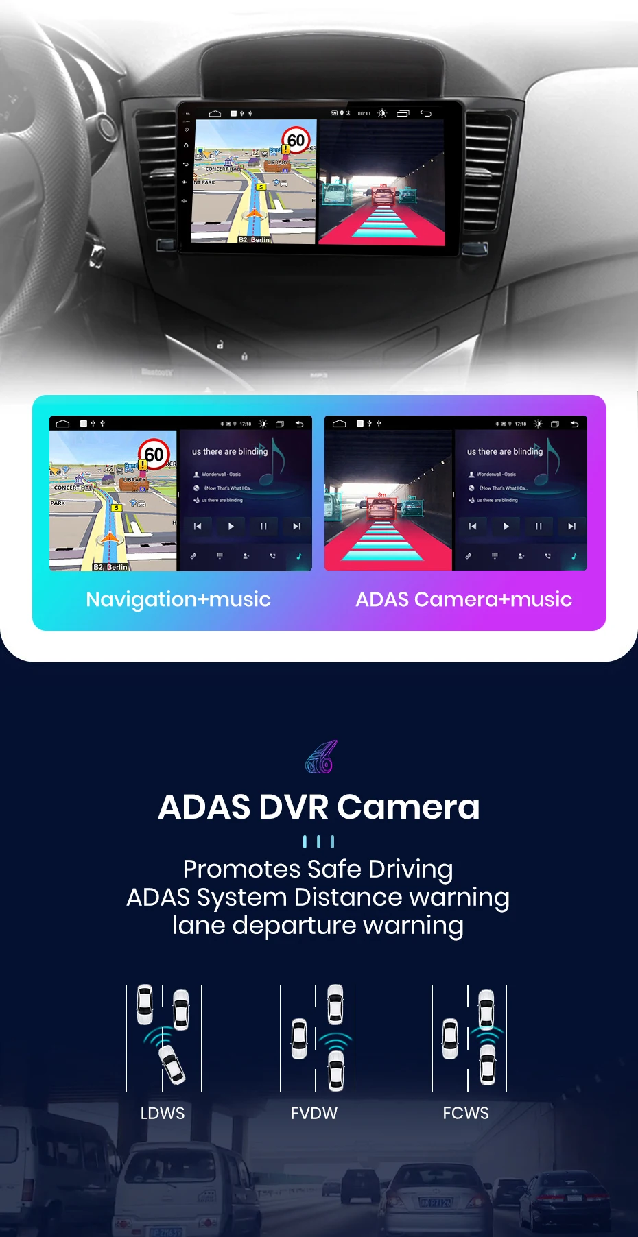 Вы можете использовать навигацию и другие приложения одновременно, такие как прослушивание музыки или включение функции ADAS.