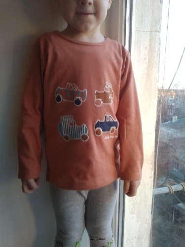 Хорошая футболка с длинным рукавом. Но На 3х летнего ребенка весом 11.5 кг и рост 92 см довольно большая, надо было брать на размер меньше.