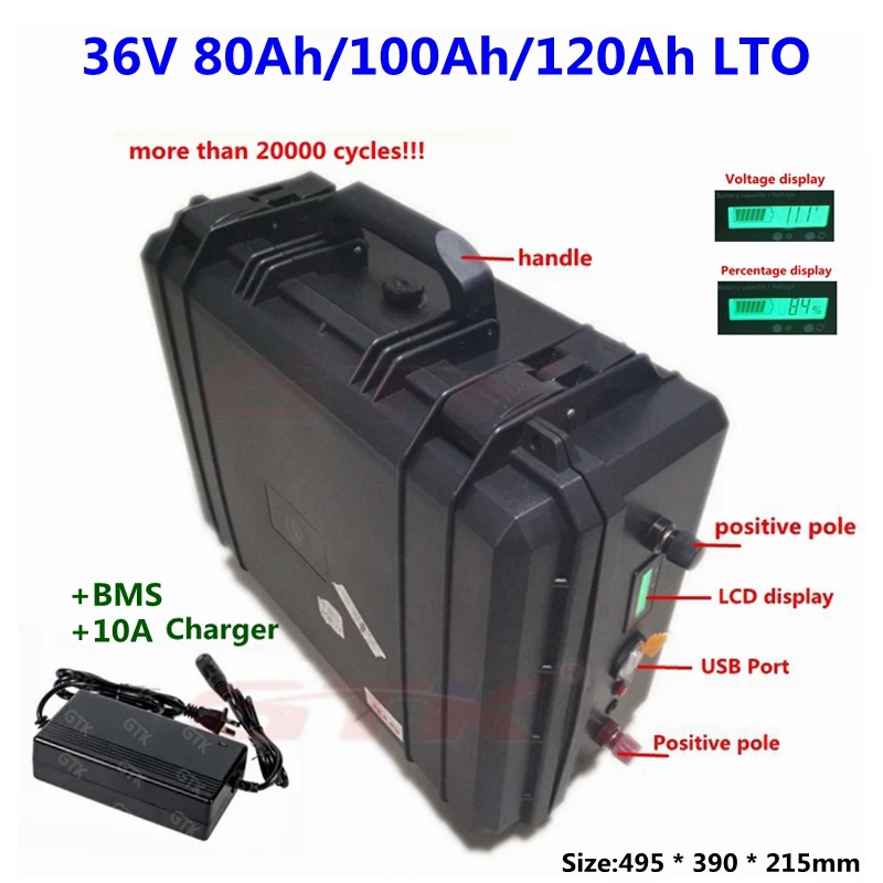 Водонепроницаемый Литий-титанатный аккумулятор IP 67 LTO 36 в 80 Ач 2,4 Ач в celsl для троллинга мотора RV солнечная панель + зарядное устройство 10 А