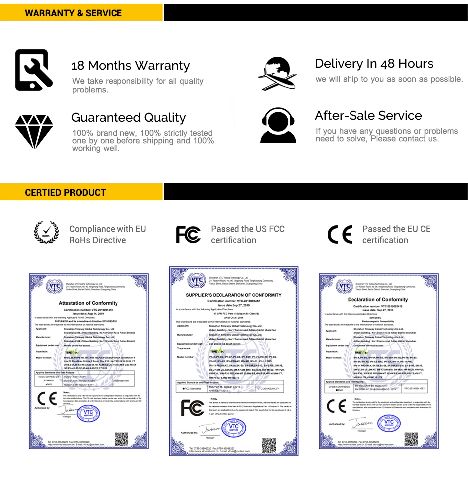 1. Пожалуйста, проверьте экран и проверьте его перед установкой. Если у вас есть какие-либо проблемы, пожалуйста, сначала свяжитесь с нами.