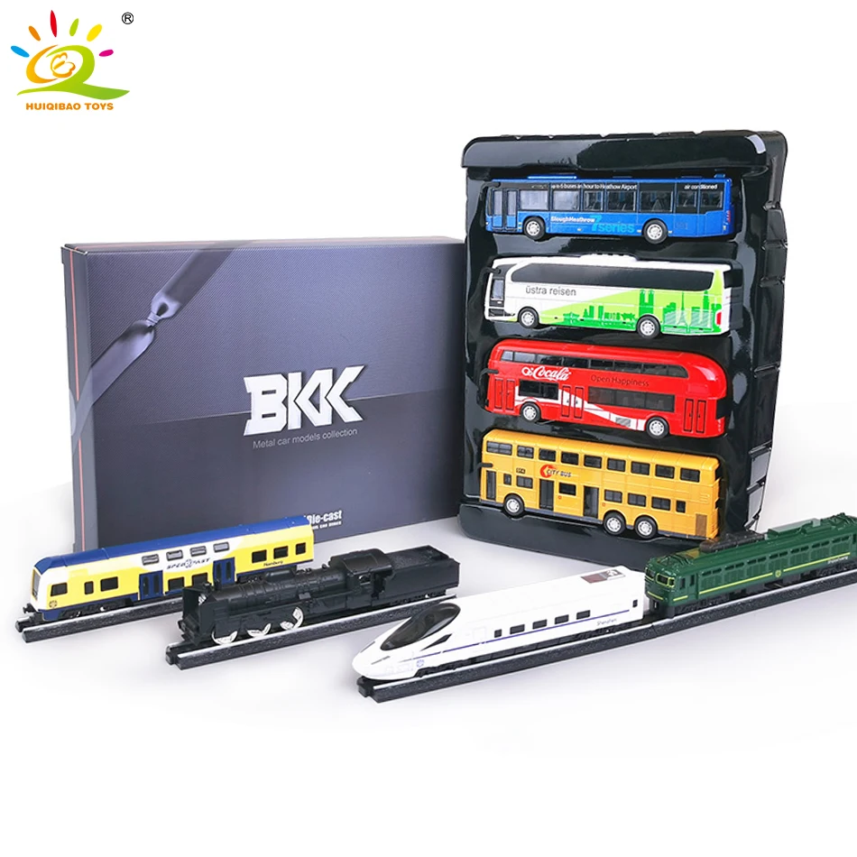 4 шт.компл. скоростной поезд для литья под давлением, металлический сплав, школьный автобус, модели автомобилей, железная лошадь, трек, игрушки для детей, подарок