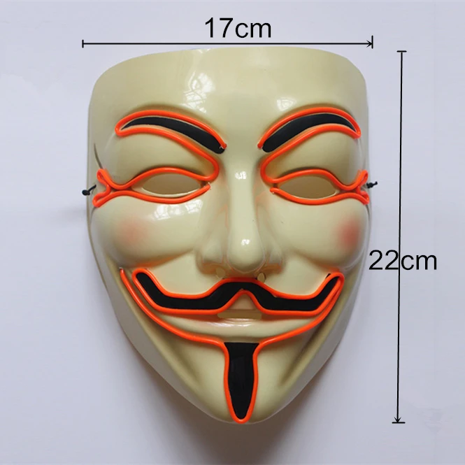 Материал: ПВХ Размер: 22 см * 17 см Применение: маска для вечеринки, маскарадные маски, карнавал, Хэллоуин, день рождения вечерние свадьба Количество: 1 шт. Область покрытия: полное лицо Привод:Батарейки размера AAA 2 * R6 (не входят в комплект) Режим вспышки: всегда включено-медленная вспышка-вспышка Примечание: мелкие детали не предназначены для детей младше 3 лет. Посылка входит: В комплект входит: 1 шт. X 3V5M устойчивый на EL проводной инвертор 1 шт. X маска EL wire (без батареи) Функция 1, безвредный: Без УФ-излучения, без неблагоприятного воздействия на организм человека. 2, форма любого: в соответствии с требованиями заказчика для производства различных форм. 3, низкое энергопотребление: в низкой мощности будет, когда светильник, потребляемая мощность милливатт. 4, можно сгибать: в различных формах светильник ким, может быть nd адаптироваться к форме изделия можно даже сложить. 5, без нагрева: Электролюминесцентная пленка является источником холодсветильник, работа основной нет температуры, рабочая температура ниже флуоресцентной лампы. 6 светильник легкий равномерный, мягкий светильник не мерцает, не заставит глаза производить напряжение, усталость. 7, хорошая ударопрочность: Электролюминесцентная пленка и другие светильник излучающие устройства, это нелегко из-за воздействия внешнего мира и сбоя. 8, длительный срок службы: 10000 часов.