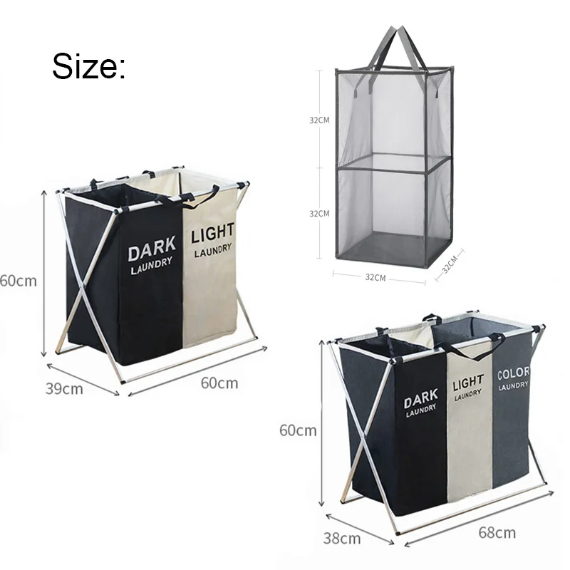 X-образная складная корзина для грязного белья, органайзер с принтом, складная корзина для домашнего белья с тремя сетками, большая корзина для белья