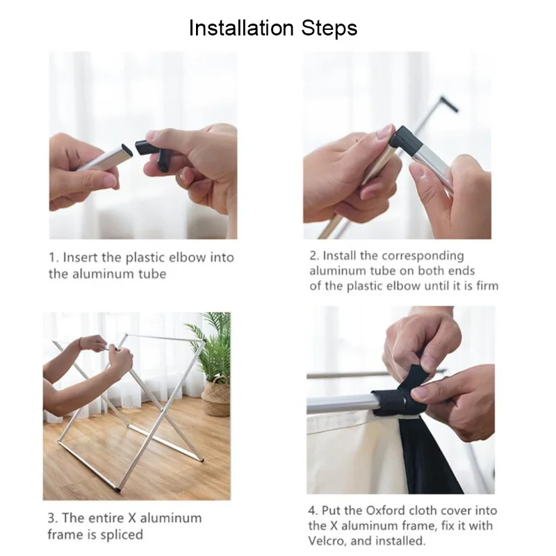 Параметры: Товар: корзина для обедов/хранение одежды Материал: ткань Оксфорд Установка: 1. Вставьте пластиковый колено в алюминиевую трубку 2. Установите соответствующую алюминиевую трубку на обоих концах пластикового локтя, пока она не станет твердой 3. Алюминиевая рама полностью соединена 4. Поместите чехол из ткани Оксфорд в алюминиевую раму, закрепите на липучке и установите.