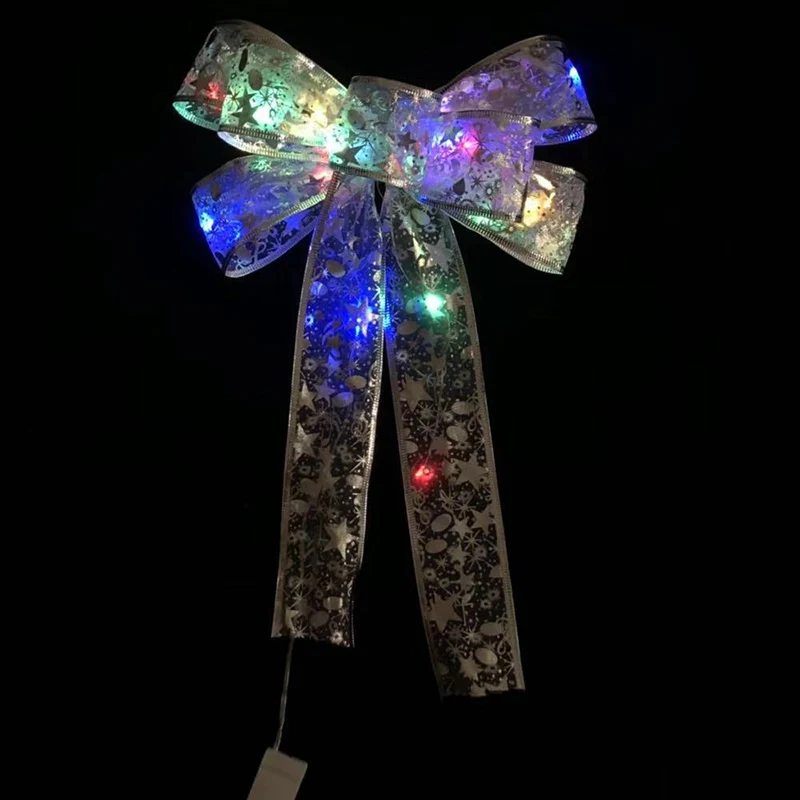 Большие Рождественские банты размером 35 см, светящийся бант с серебряным принтом, со светодиодной подсветкой, рождественский подарок, украшение-бант, товары для Рождества