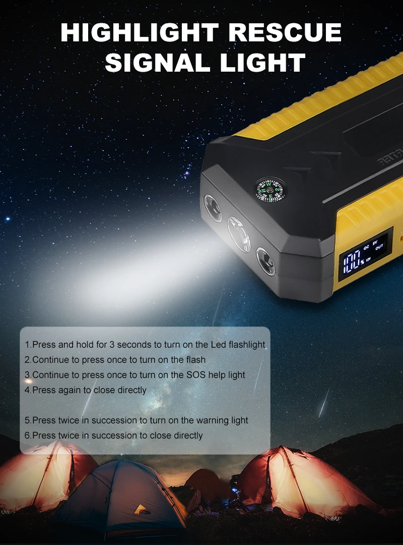 Портативное аварийное пусковое устройство для автомобиля, 88000 мАч, 12 В, 600 А, внешний аккумулятор с USB-зарядкой и светильник