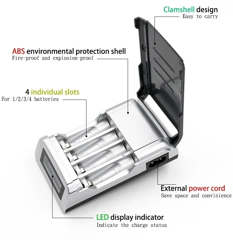 Умное зарядное устройство с 4 слотами и ЖК-дисплеем для аккумулятор...