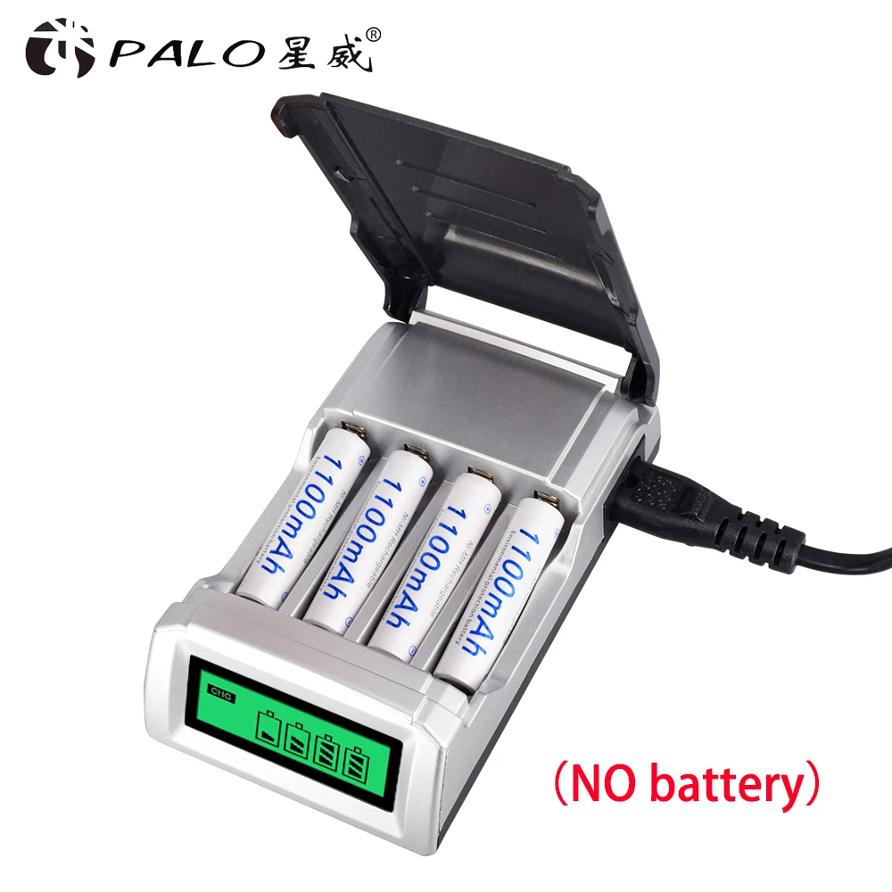 Умное зарядное устройство PALO для аккумуляторов AAAAA, 4 слота, ЖК-дисплей, для перезаряжаемых батарей AA, 2A, AAA, 3A, NiCd, NiMh